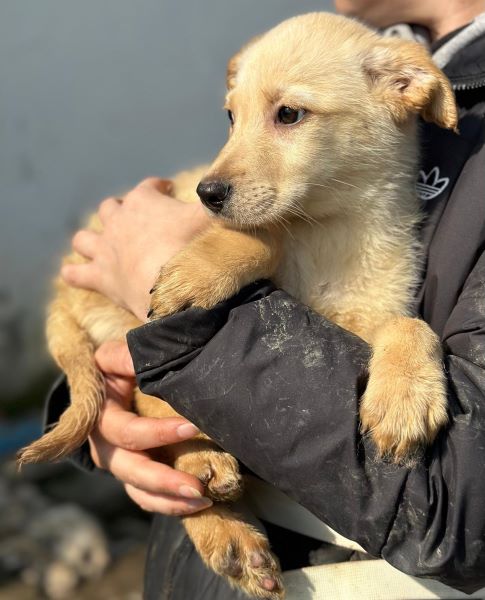 Wesen & Zutraulichkeit (Character & Trustworthiness) | welpentypisch (typical for puppies), verspielt (playful), offen (open), freundlich (friendly), neugierig (curious), überall anfassbar (touchable everywhere) |