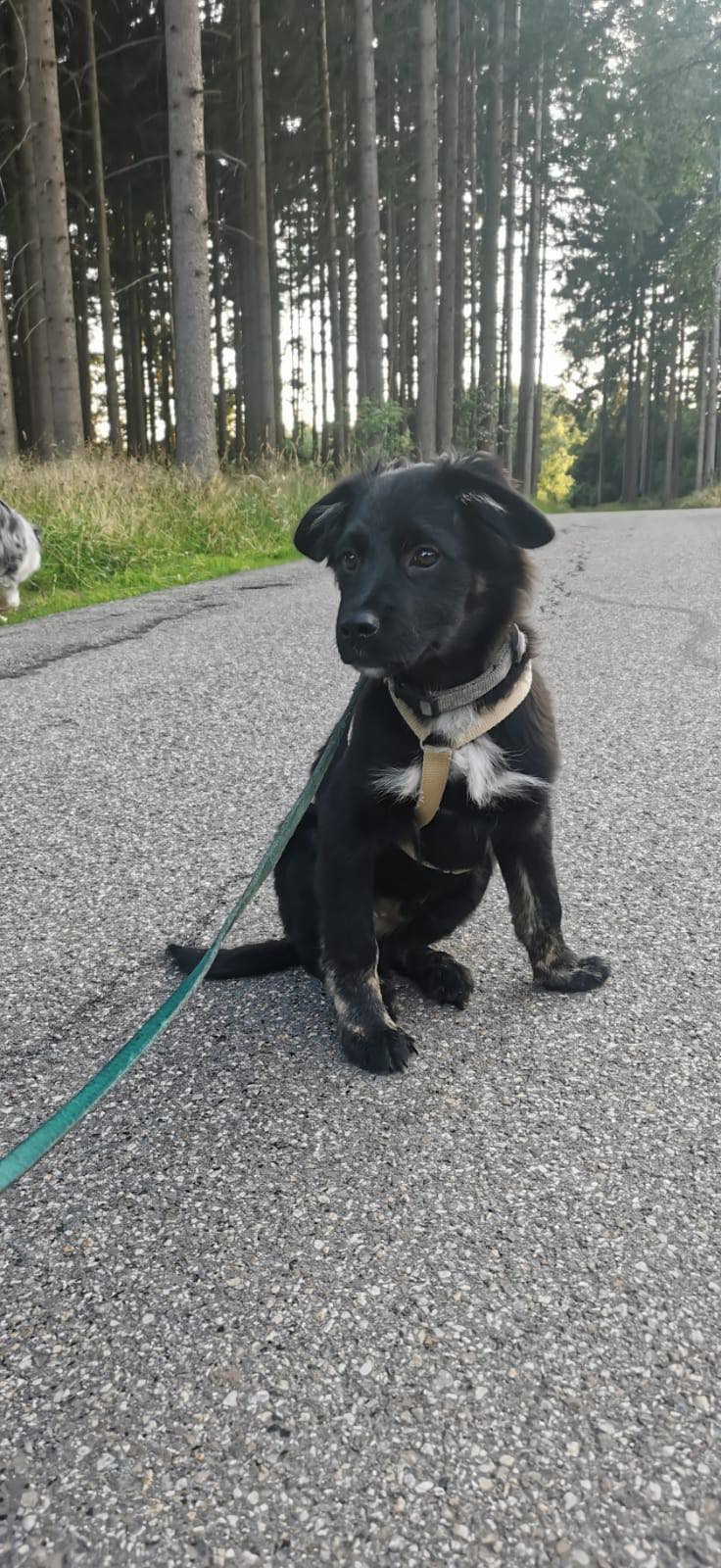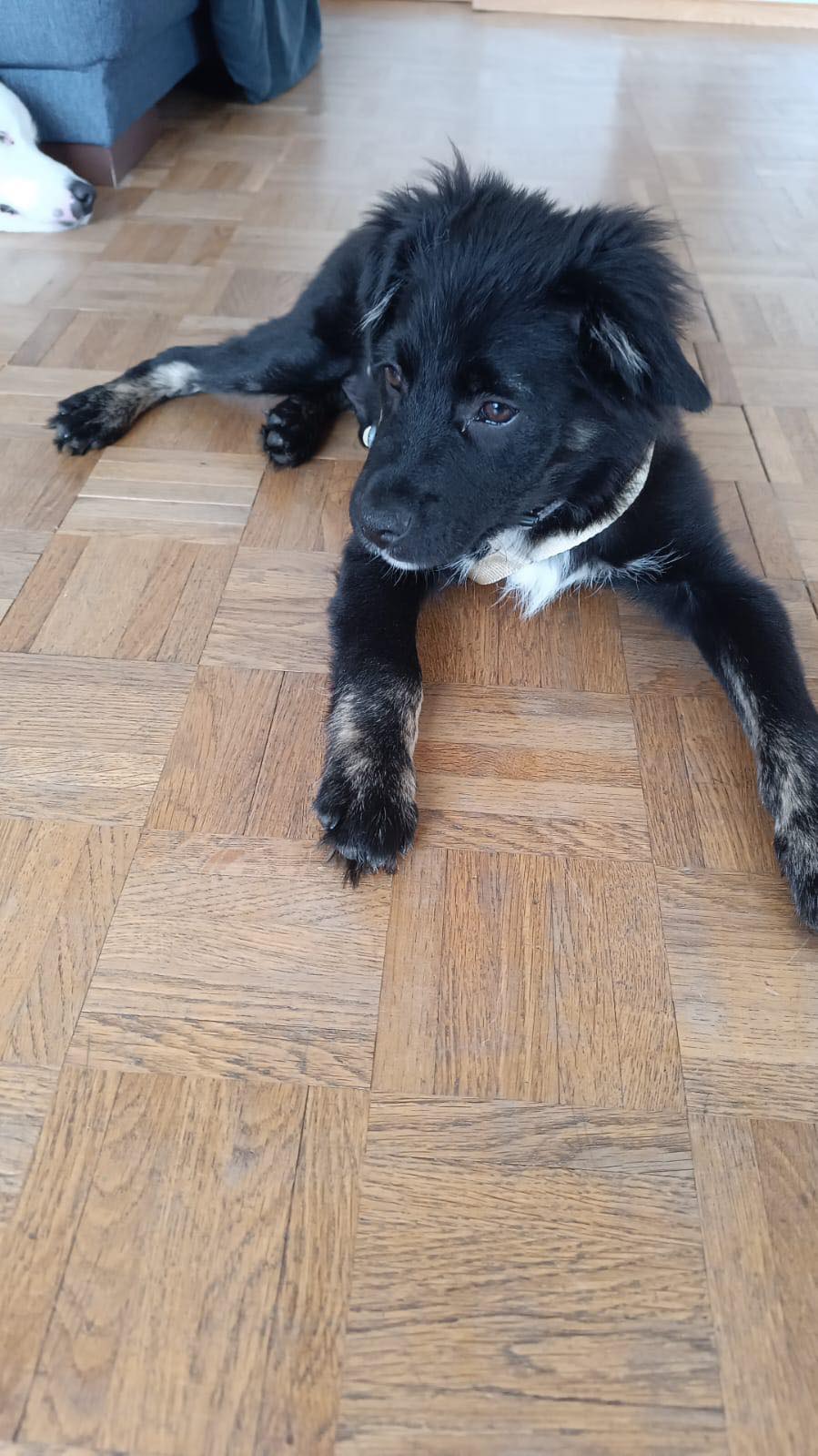 Mit unserem Familienhund hat er viel Spass und Freude an gemeinsamen Spielideen. Tofi zeigt sich von Anfang an sehr offen, fröhlich und verschmust, welpentypisch verspielt. Stubenrein ist Tofi noch nicht zu 100%, auch das allein bleiben muss er noch lernen, er vermisst sein Menschenrudel sehr. Wir wünschen uns für Tofi aktive Menschen, die Lust haben eine Welpenschule zu besuchen, sowie viel Geduld und Zeit für sein welpentypisches Verhalten zeigen. Ein Zweithund wäre ideal, jedoch kein Muss. Er wird ein sehr treuer Hundebegleiter werden, verschenkt sofort sein Herz, lernt schnell und möchte gesehen werden.