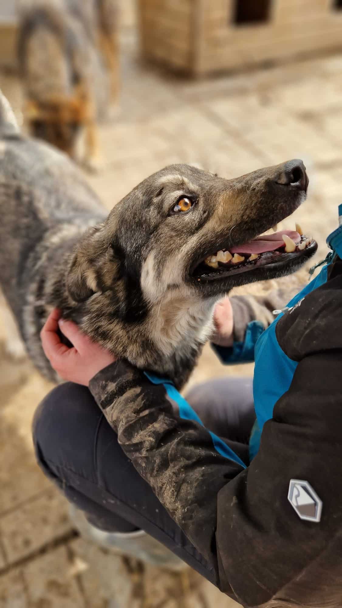 TOM ist ein toller und dem Menschen zugewandter Rüde im besten Alter. Unsere Streicheleinnheiten hat er genossen, war dabei aber auch immer im „Außen“, um zu beobachten, was sonst noch so im Kennel abgeht. Alles war interessant für ihn, ob es unsere Handschuhe, die Schreibkladde, der Klapphocker war – er hat alles unter die Lupe genommen, sich dann aber auch wieder uns zugewandt und weiter streicheln lassen. Zur Zeit lebt er mit einer Hündin im Kennel, mit der er augenscheinlich gut klar kommt.