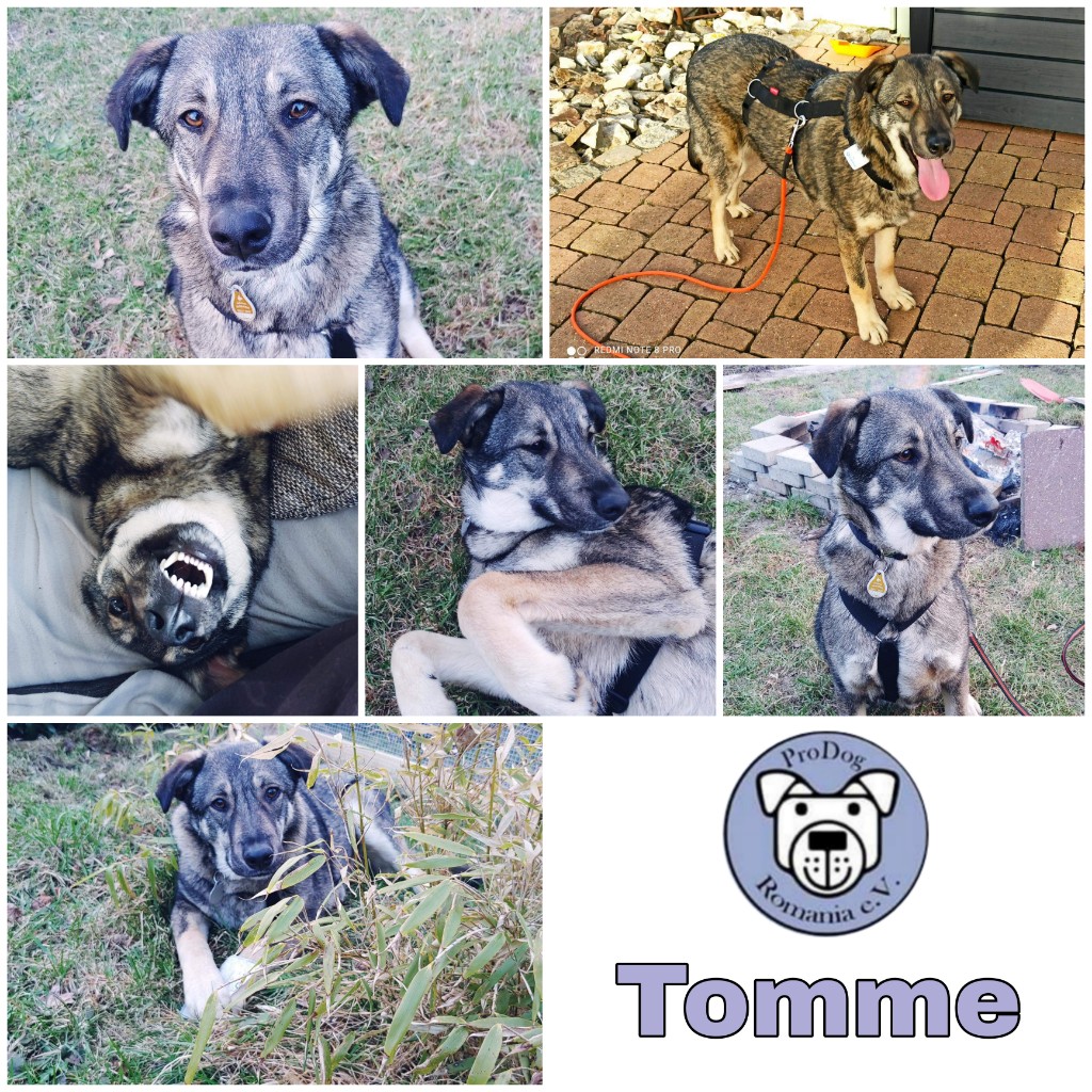 Tomme ist sehr verspielt und dann auch etwas ungestüm. Katzen fordert er zum Spielen auf und rennt ihnen dann auch gerne hinterher, wenn es diesen zu viel wird. Deshalb Vermittlung bevorzugt in katzenfreien Haushalt oder Haushalt mit selbstbewussten, hundeerprobten Katzen. Kinder kennt Tomme noch nicht. Diese sollten aufgrund seiner ungestümen Art aber zumindest standfest sein.