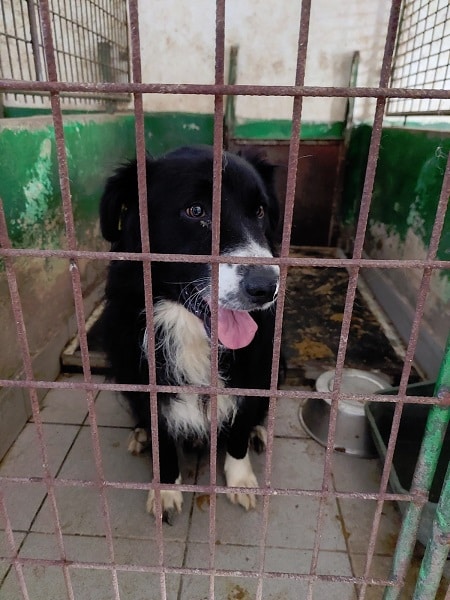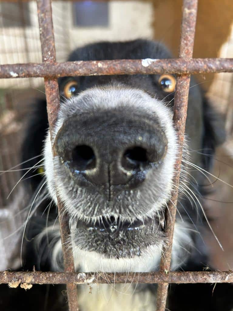TOPAS sitzt leider erneut in den Vetkennels, wieder alleine in einem Abteil. Zu uns Menschen ist er nach wie vor freundlich und offen, lässt sich gerne streicheln.