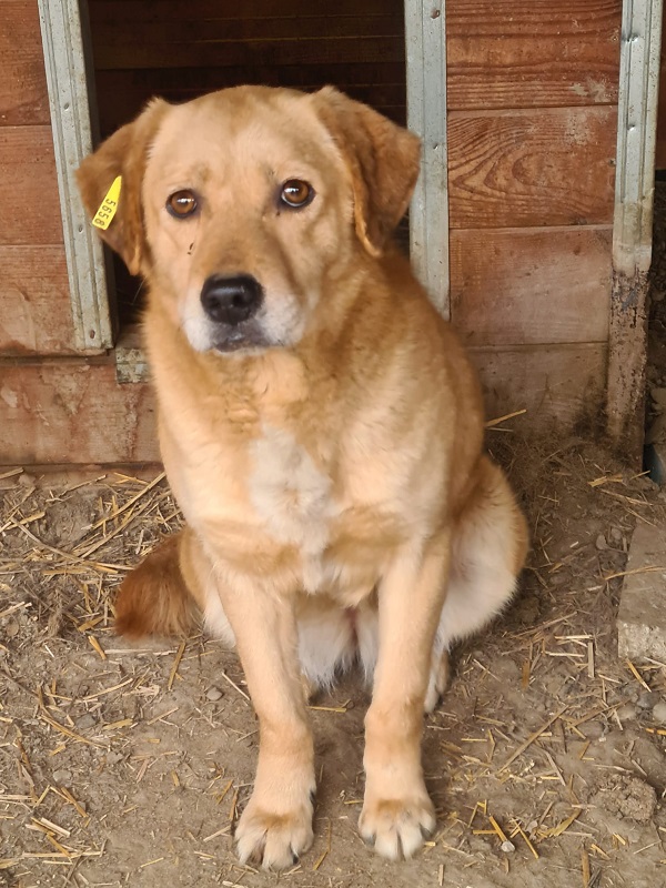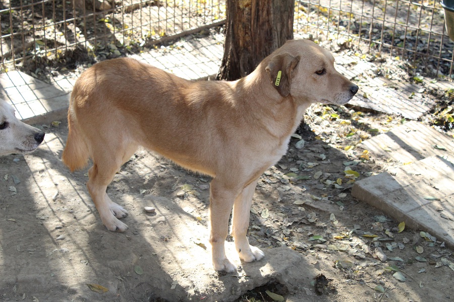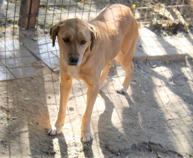 Leider kontrolliert ein Rüde in ihrem Kennel das Futter. Als wir sie besuchten und ihr Futter in die Hütte legen, fraß sie daher erstmal sehr gierig.