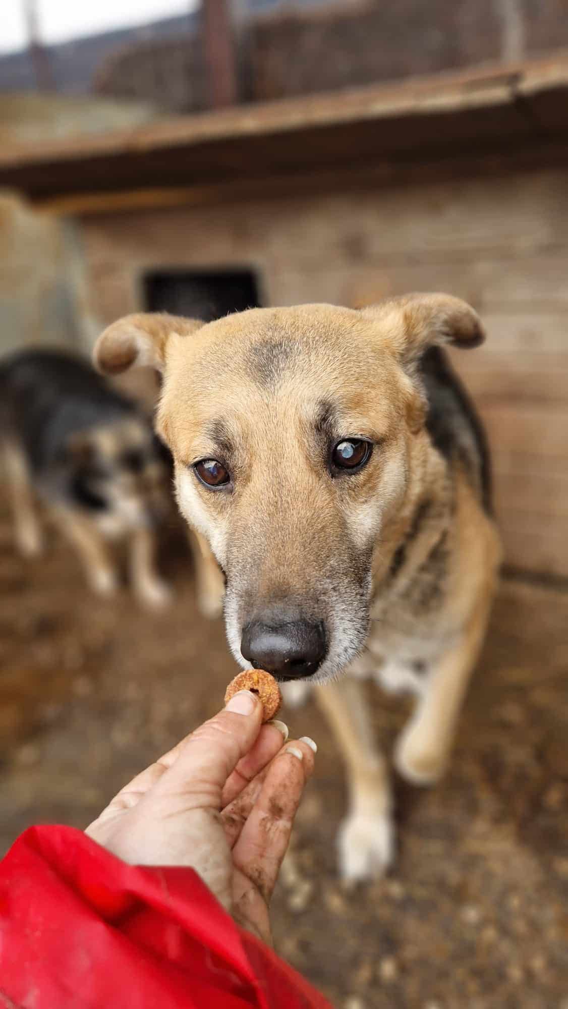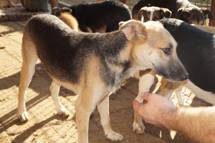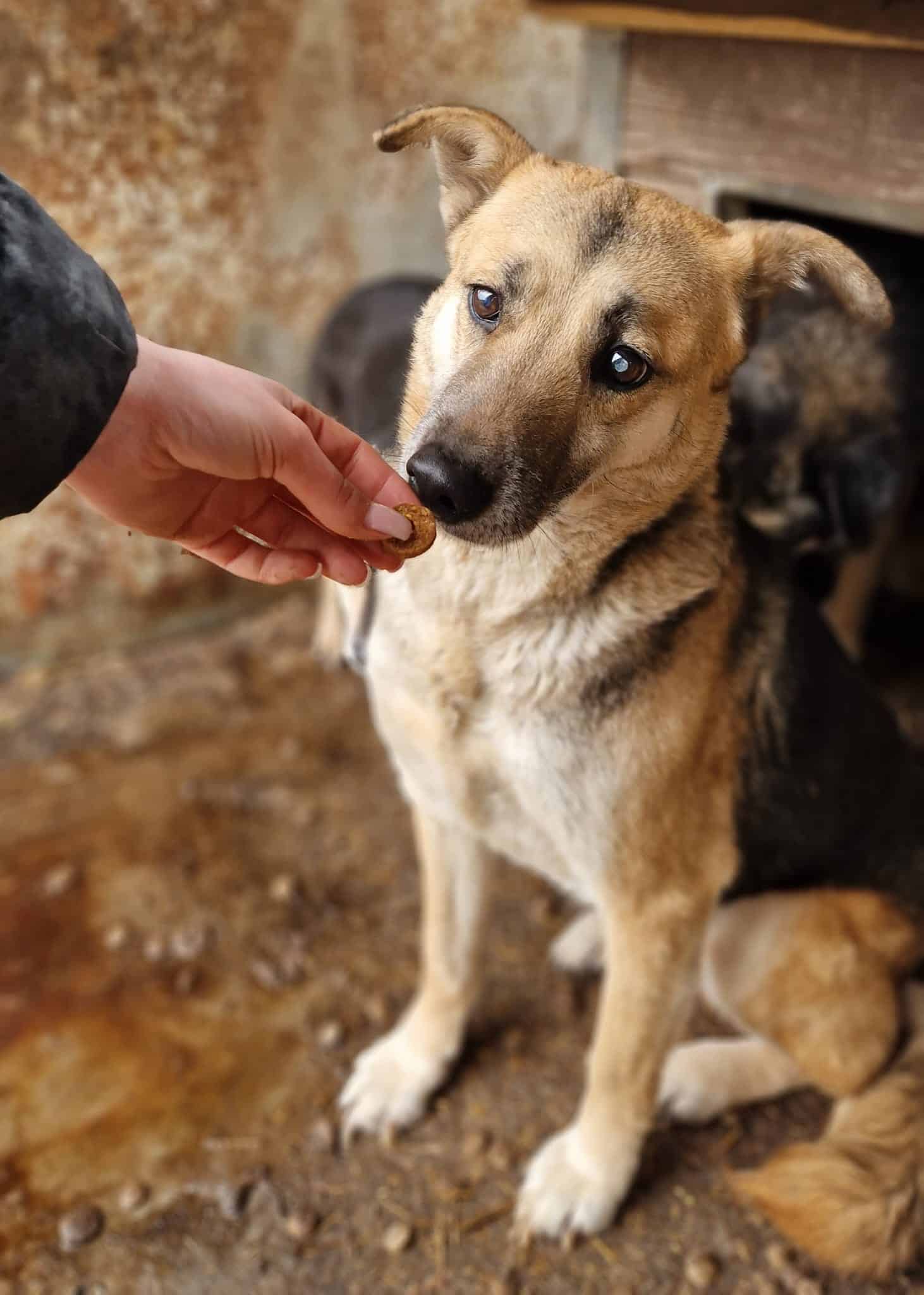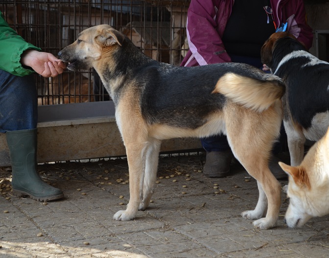TORRY sieht nur noch schemenhaft, möglich, dass er schon komplett blind ist. Er nahm uns nicht richtig wahr und traute sich daher auch ganz dicht zu uns zu kommen. Er roch nach unseren Leckerlis, fraß sie aber nicht. Er ließ sich vorsichtig berühren, aber zeigte auch hier nicht viel Reaktion. Man könnte denken, er ist ein sehr alter Hund, dabei ist er erst 6 Jahre alt.