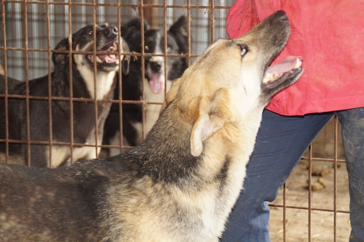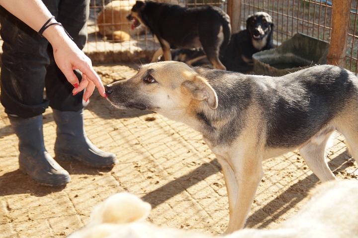 In seinem Kennel flüchteten leider alle Hunde vor uns, auch an TORRY kamen wir nicht heran. Wenn man ihn zufällig berührt, zeigt er zwar kein Abwehrverhalten, aber insgesamt hatte er wieder deutlich Angst vor uns und konnte keine Nähe zulassen.