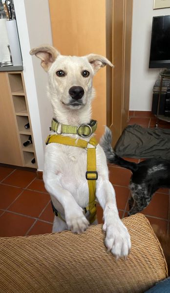 Totti ist stubenrein, fährt gerne Auto, lässt sich gut abrufen und kann problemlos bis zu 4 Stunden mit Hundekumpels alleine bleiben. Besuch findet Totti super, egal ob Männer oder Frauen. Seine Lieblingsbeschäftigung ist es, mit seinen Kumpels durch den Garten zu toben. Er ist total verspielt und freundlich zu einfach allen Hunden, testet aber junghundtypisch auch mal die Grenzen seines Gegenübers. Ein freundlicher Hundekumpel, Rüde oder Hündin spielt keine Rolle, wäre toll für Totti. Bei regelmäßigen Hundekontakten wird Totti aber auch als Einzelhund glücklich. Er läuft gut an der Leine, geht entspannt Gassi sowohl in der Stadt als auch im Wald.