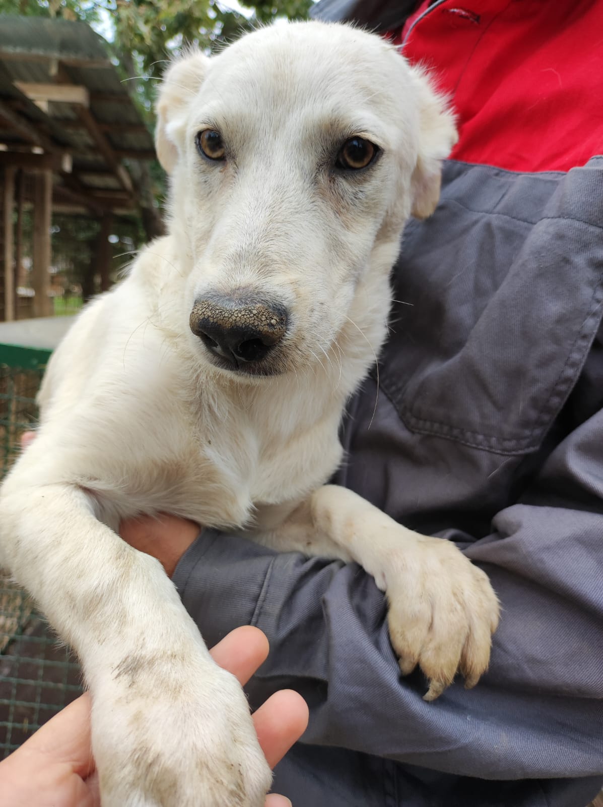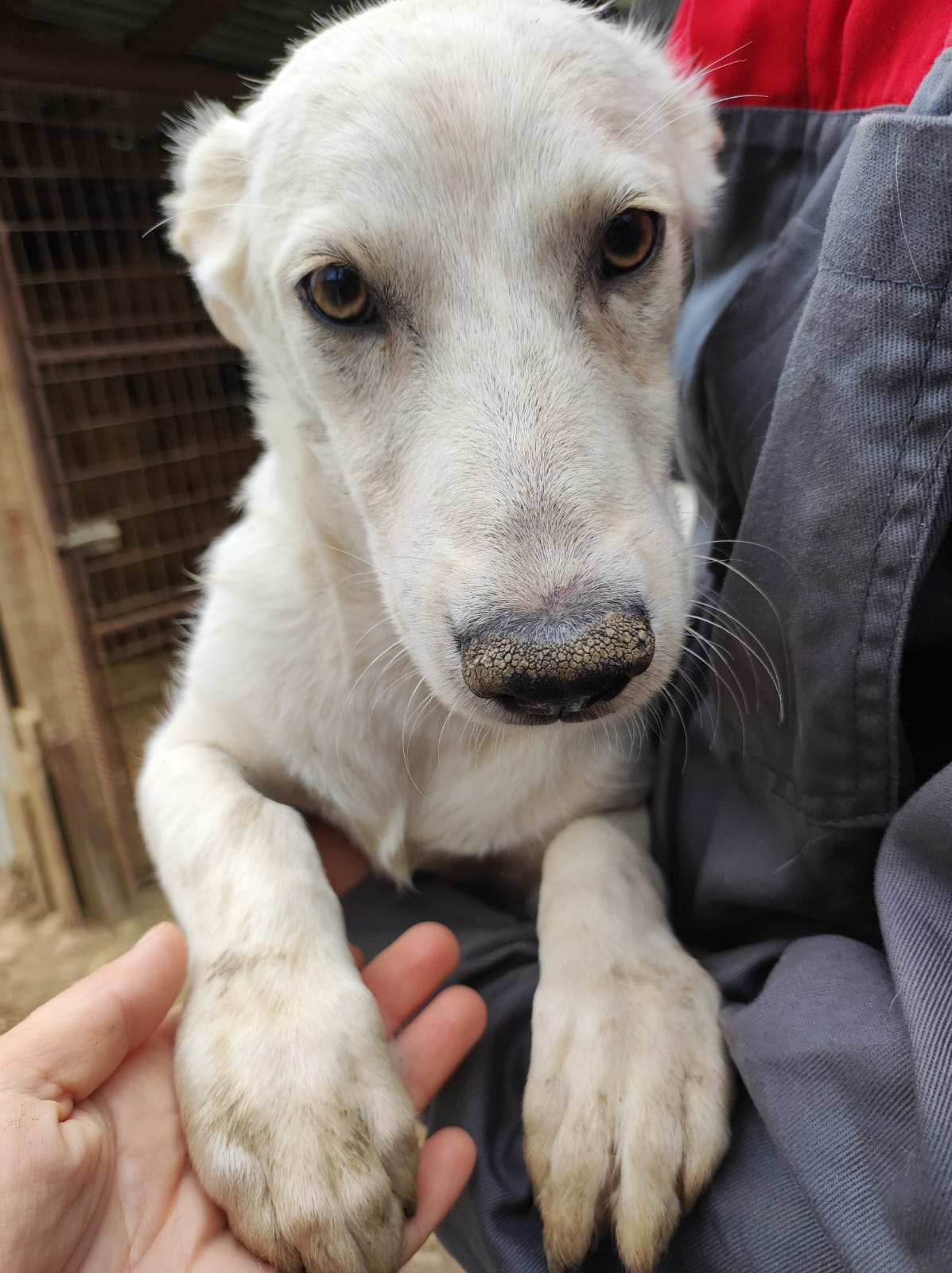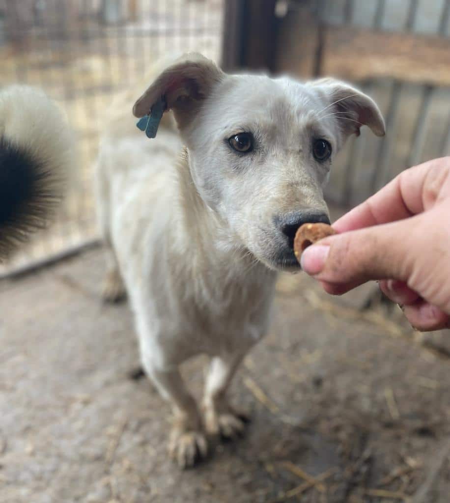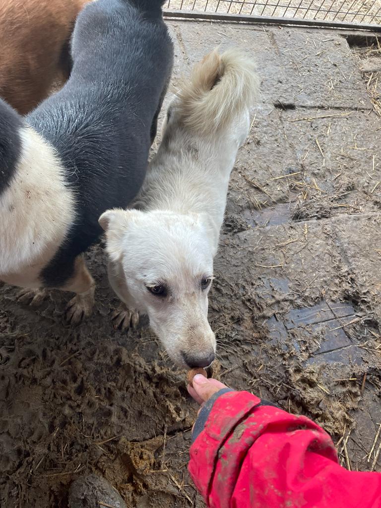 TOTTI ist der kleinste in seinem Kennel und lebt dort mit einigen weiteren großen Junghunden zusammen. Er kam immer neugierig in die Nähe, holte sich seine Leckerchen ab, wollte sich aber nicht so richtig streicheln lassen. Für ihn wäre ein souveräner Ersthund, an dem er sich orientieren kann, sicher von Vorteil und würde ihm die Eingewöhnung erleichtern. Er sollte zeitnah ausreisen, um sich nicht noch unsicherer zu Entwickeln.