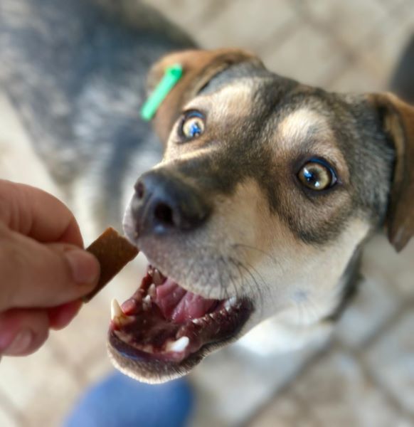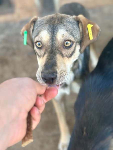 Unsere Leckerchen fand sie toll und nahm sie problemlos aus der Hand. Für mehr reichte es während unseres Besuchs nicht.