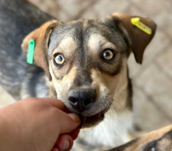 TOUCH war stets neugierig und hielt sich immer in unserer Nähe auf, dabei fiel uns ihre besondere Ausstrahlung auf. Unsere Leckerchen fand sie sehr ansprechend und nahm sie ohne Probleme aus der Hand. Für weitere Interaktionen blieb während unseres Besuchs leider nicht genug Zeit. Da sie ausgesprochen sozial ist, könnte ein Zweithund zur Eingewöhnung von Vorteil sein, ist jedoch nicht zwingend erforderlich. Momentan ist sie etwas dünn und ist zudem grundsätzlich sehr zart. TOUCH hat ein sanftes Wesen. Eine tolle Hündin.