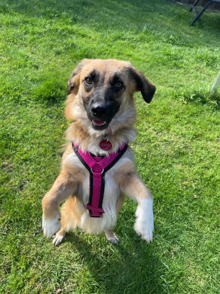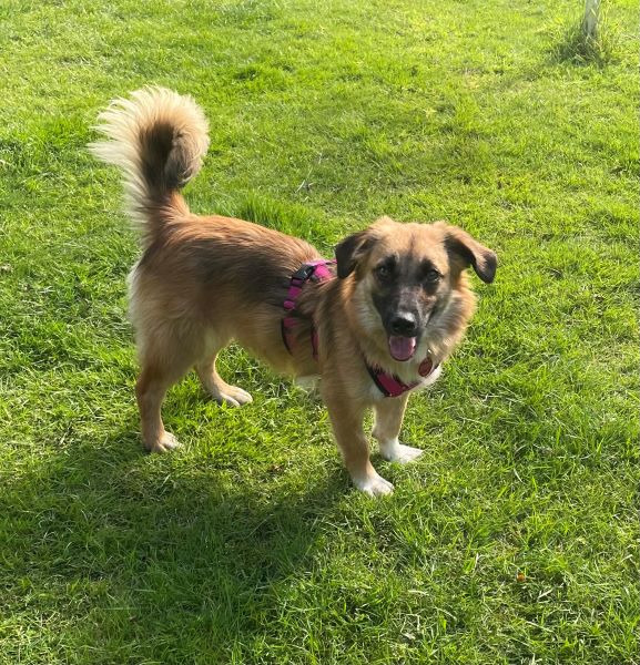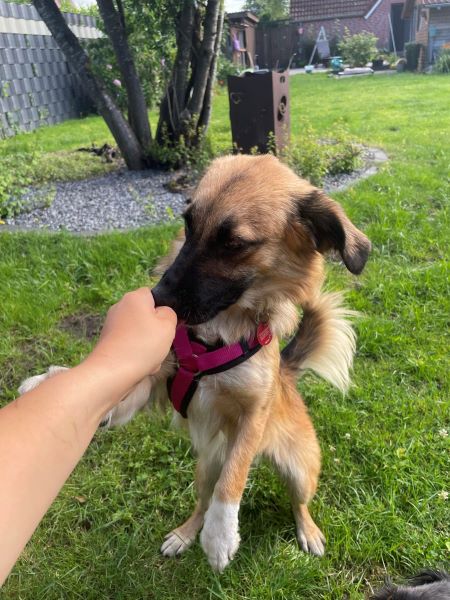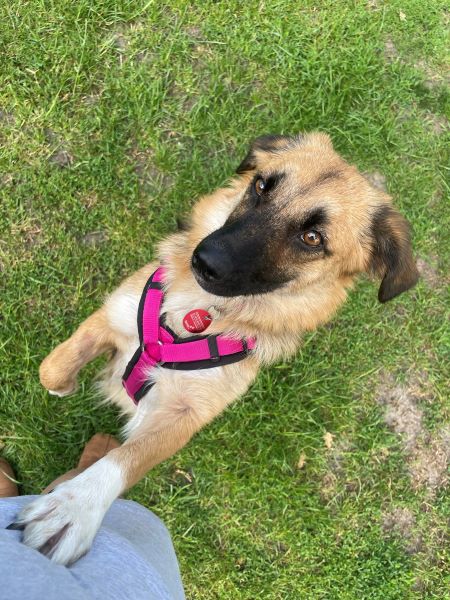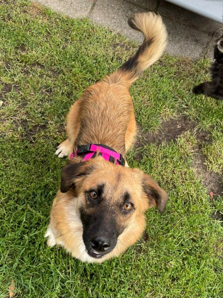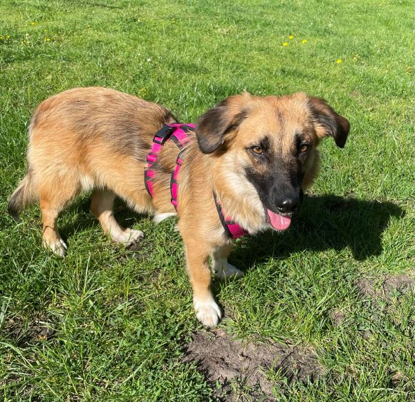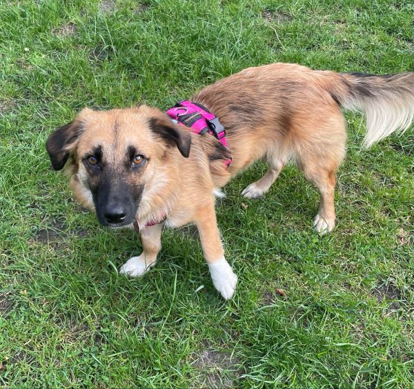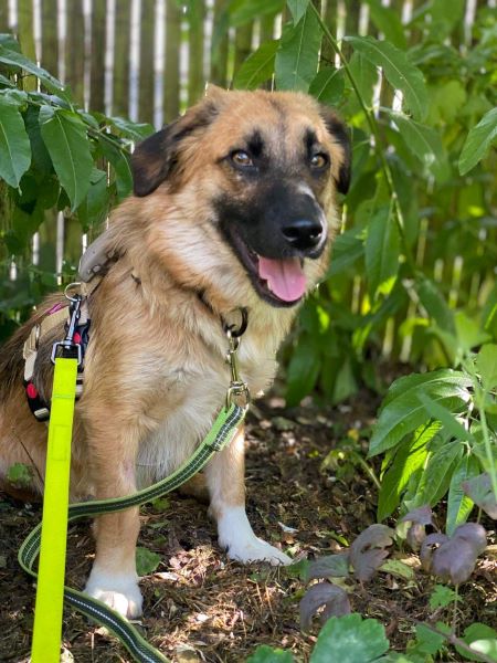 Tracy ist eine bezaubernde junge Hündin, die seit Ende Juni bei uns im Rudel lebt. Sie lebte seitdem sie ein kleiner Welpe war in einem rumänischen Tierheim, ohne groß Kontakt zum Menschen. Obwohl sie im ersten Lebensjahr so viel verpasste, gibt sie in ihrer Entwicklung nun Gas. Sie ist super neugierig und gerne vorne mit dabei. Tracy kommt gerne zum kuscheln, oder liegt in direkter Nähe. Sie ist gerne an unserer Seite, legt sich aber auch selbstständig in ihr ruhiges Körbchen, wenn sie ihre Ruhe möchte. Tracy ist bereits stubenrein und läuft an der Leine (wenn auch noch nicht perfekt). Sie läuft eine knappe Stunde brav in einer Tour mit, hat dabei gern die Nase zum ausgiebigen schnüffeln auf dem Boden.