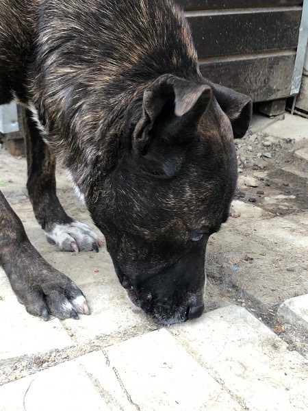 Traian freute sich über unseren Besuch. Endlich Abwechslung für den lieben Rüden. Er sitzt mit einer Hündin in einem sehr kleinen Kennel. Mit dieser zeigte er sich verträglich. Wir haben keine Leckerlies eingesetzt.
