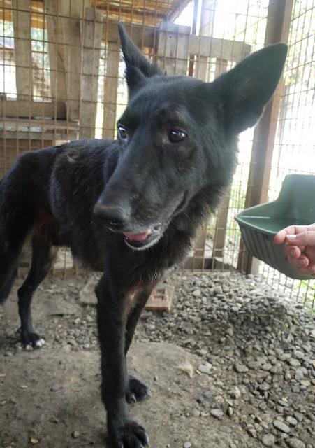 TRAMP leidet sehr in seinem winzigen Kennel, er ist super dünn, hat Hautprobleme und bräuchte dringend eine Bezugsperson, an die er sich hängen kann.