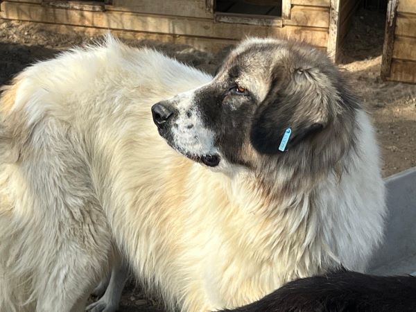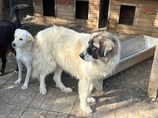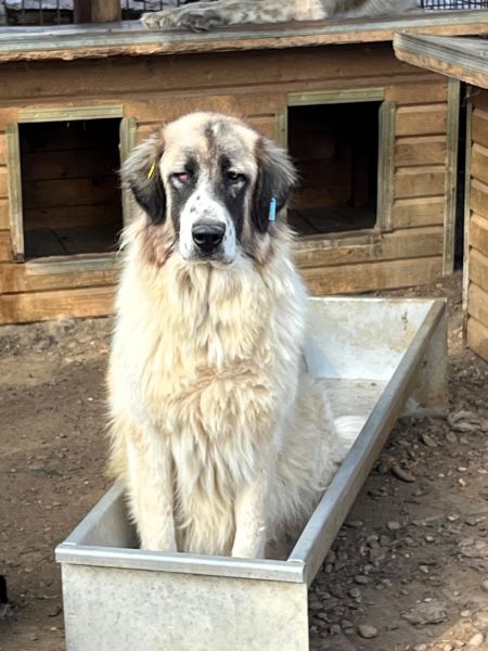 Der anfangs etwas schüchterne Herdenschutzhund war zunächst skeptisch und zurückhaltend. Nach einer gewissen Zeit näherte er sich uns und nahm Leckerlis direkt in unserer Gegenwart aus nächster Entfernung. Er zeigte Interesse und verhielt sich stets in unserer Nähe. Zudem erwies er sich gegenüber seinen Artgenossen als sehr umgänglich. Anfassen konnten wir ihn noch nicht.