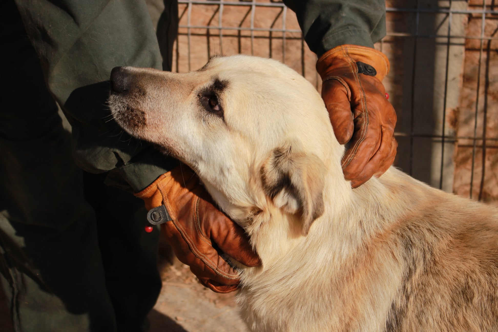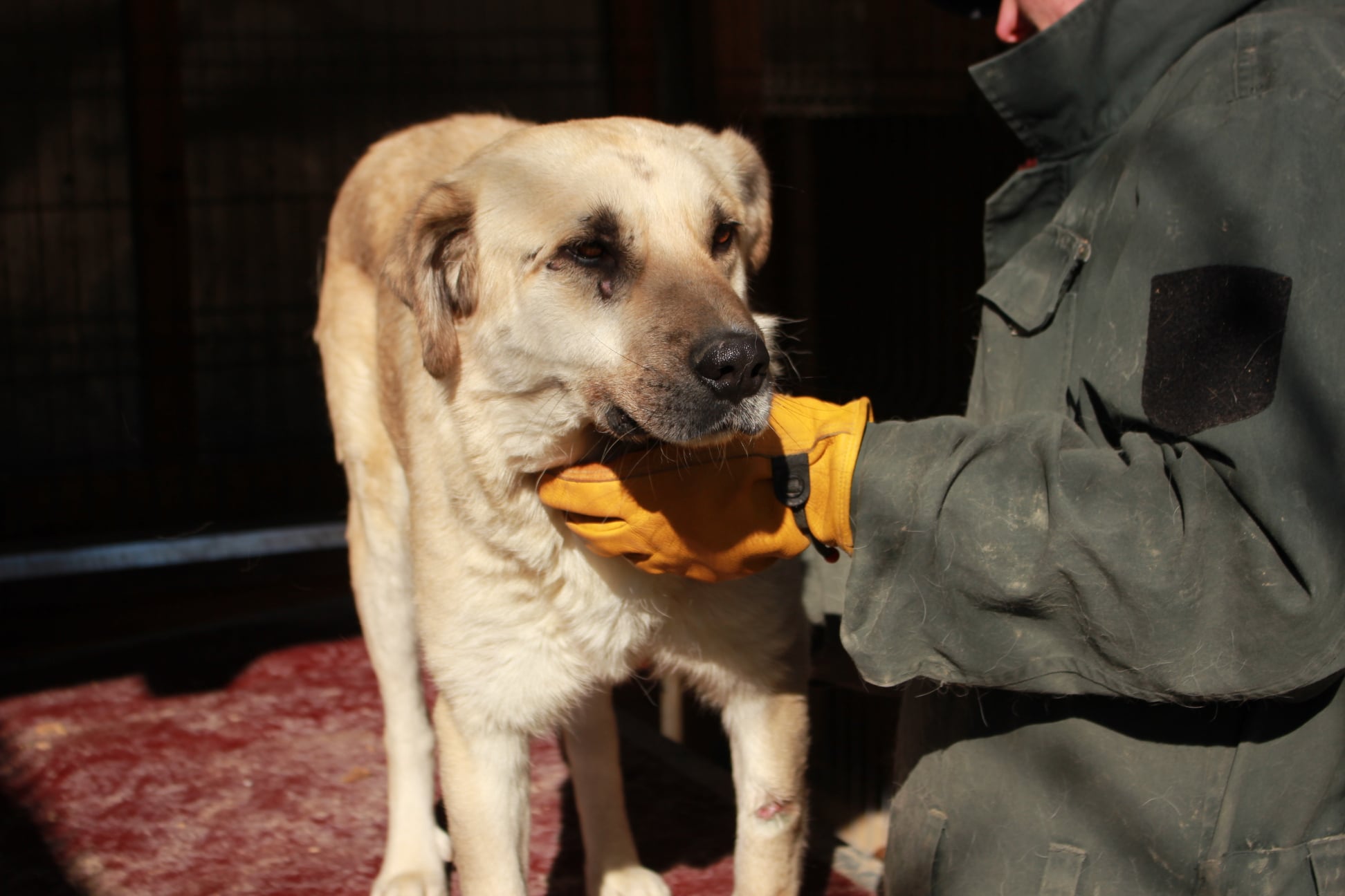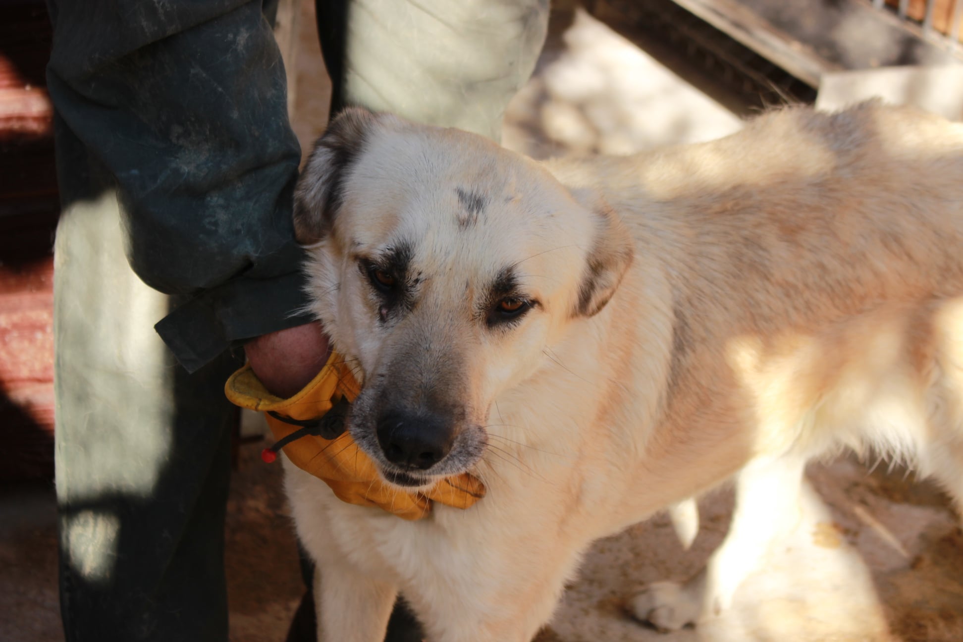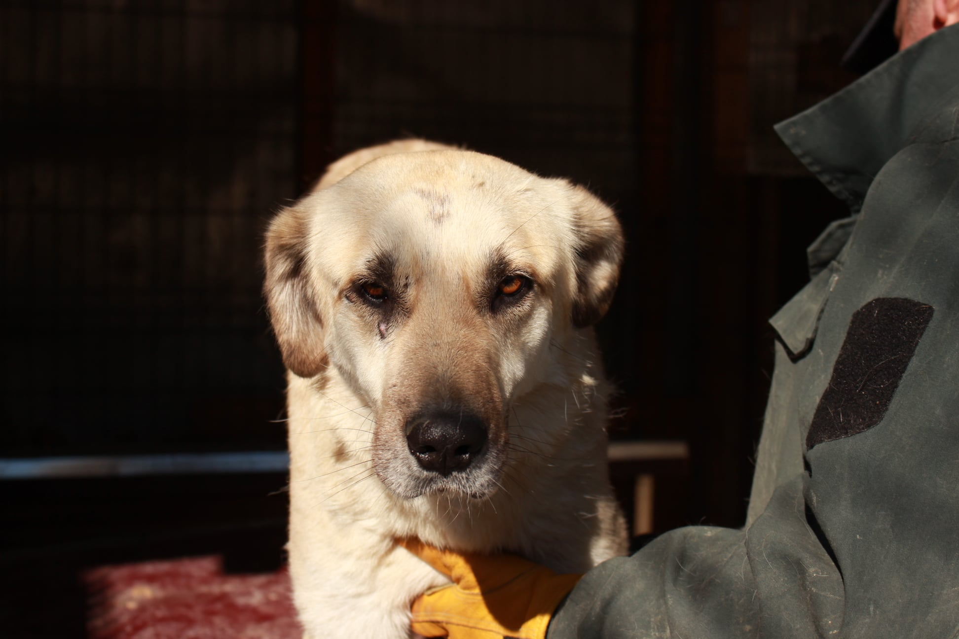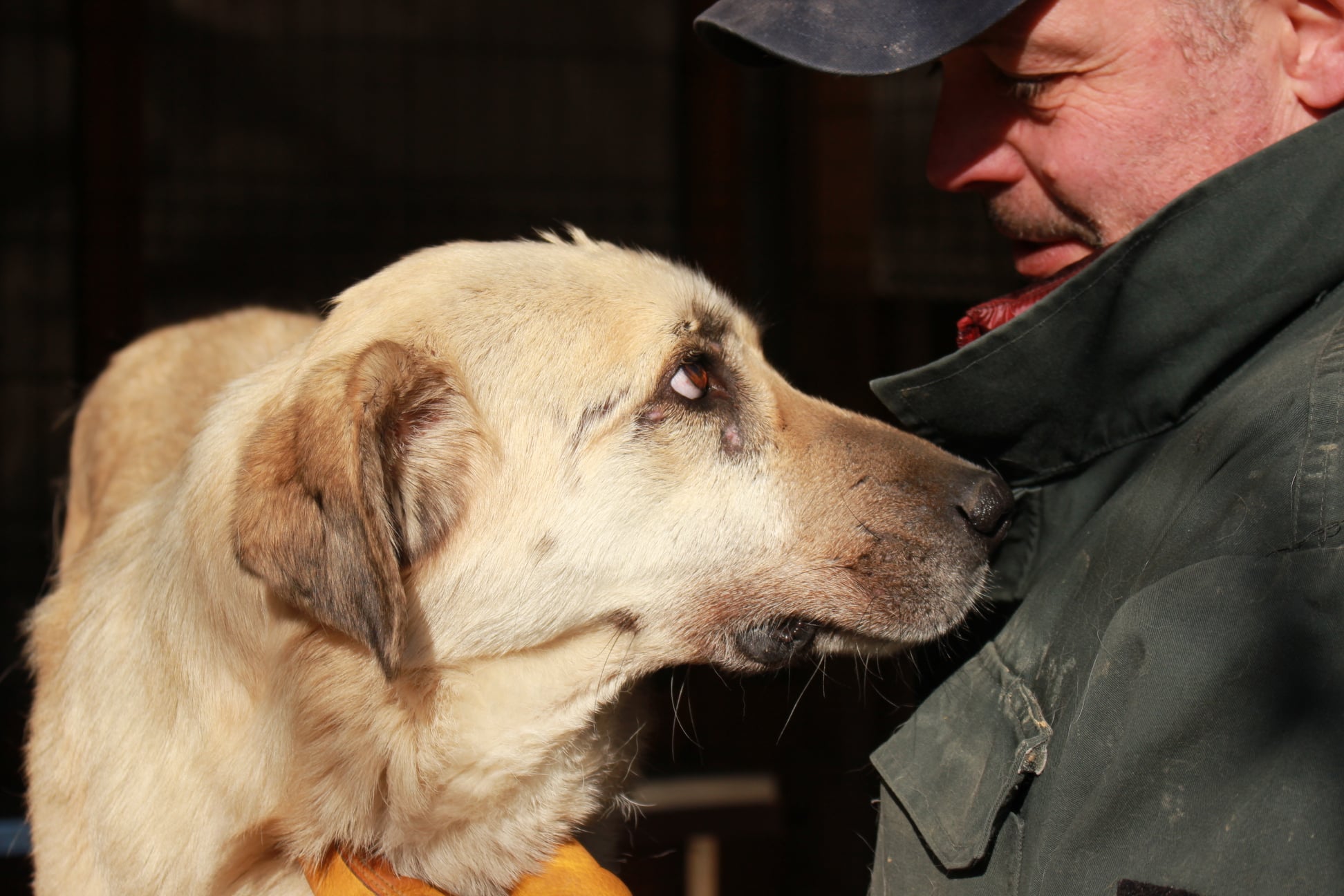 Er hat deutlich abgebaut, hat Narben im Gesicht und einen verletzten Vorderlauf. In seinem jetzigen Kennel geht es ihm besser, aber er ist deutlich verändert. Traurig, müde, kraftlos.