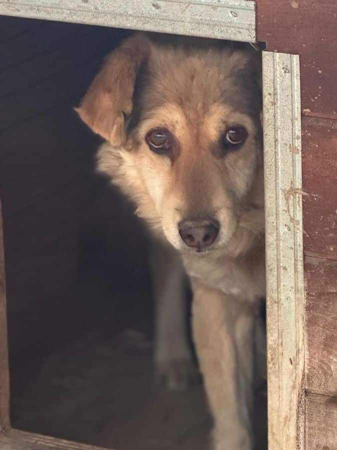 TRIP ist leider weiterhin unsicher uns gegenüber und versteckt sich in der Hütte. Mit Leckerlis auf dem Boden konnten wir sie herauslocken, diese nahm sie auch vom Boden auf. Für Trip wünschen wir uns sehr erfahrene Menschen im Umgang mit unsicheren Hunden, die ihr mit Ruhe und Geduld die schönen Seiten des Lebens zeigen. Mit Rüden zeigt sie sich verträglich, eine Aussage über die Verträglichkeit mit Hündinnen kann momentan nicht getroffen werden.