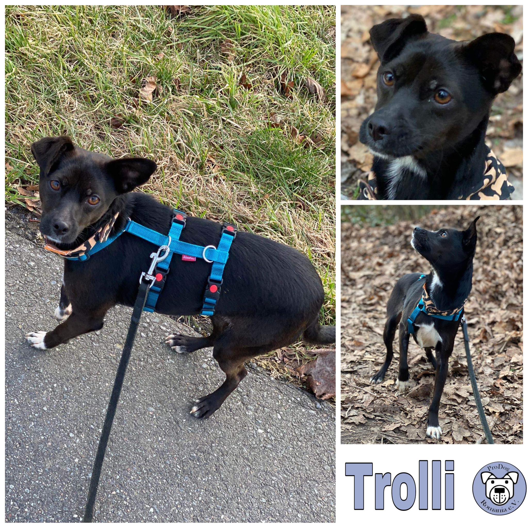 Trolli ist verspielt, aktiv und aufmerksam und macht auch an der Leine, beim Gassi gehen, eine tolle Figur.