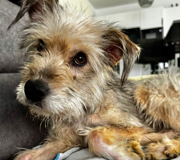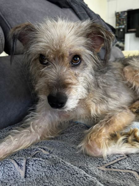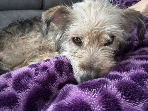 Die kleine Maus war von vielen Hautproblemen geplagt und komplett abgemagert.