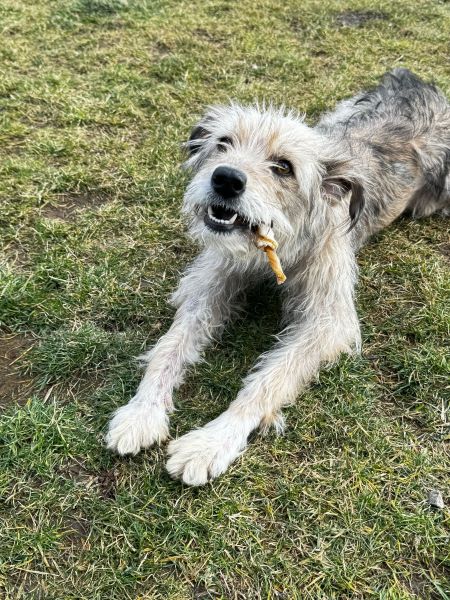 Trudy lebt auf ihrer Pflegestelle mit einem großen Rüden zusammen, was nach kurzer Zeit super funktioniert. Sie sucht seine Nähe und findet das Toben mit ihm klasse.