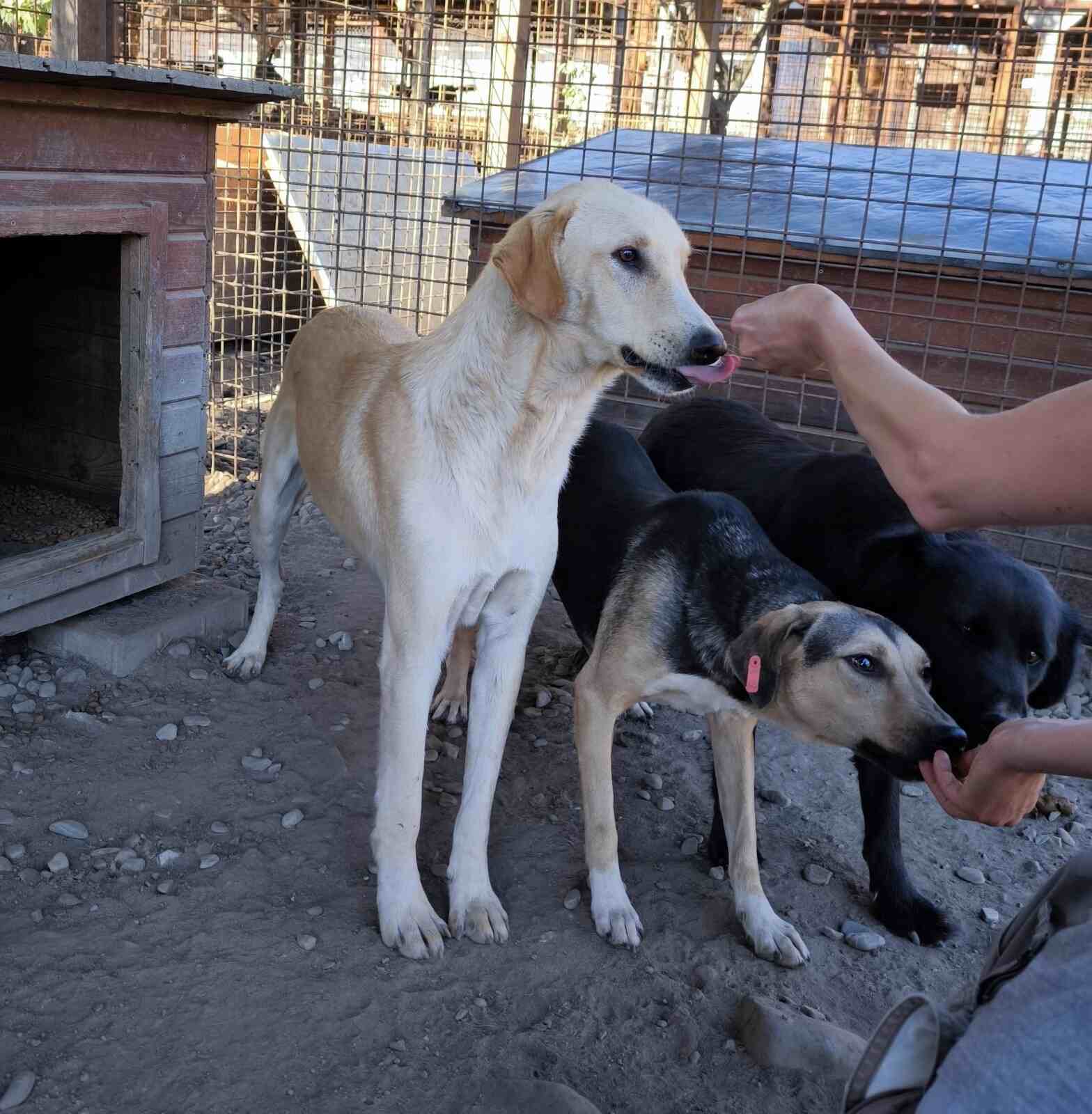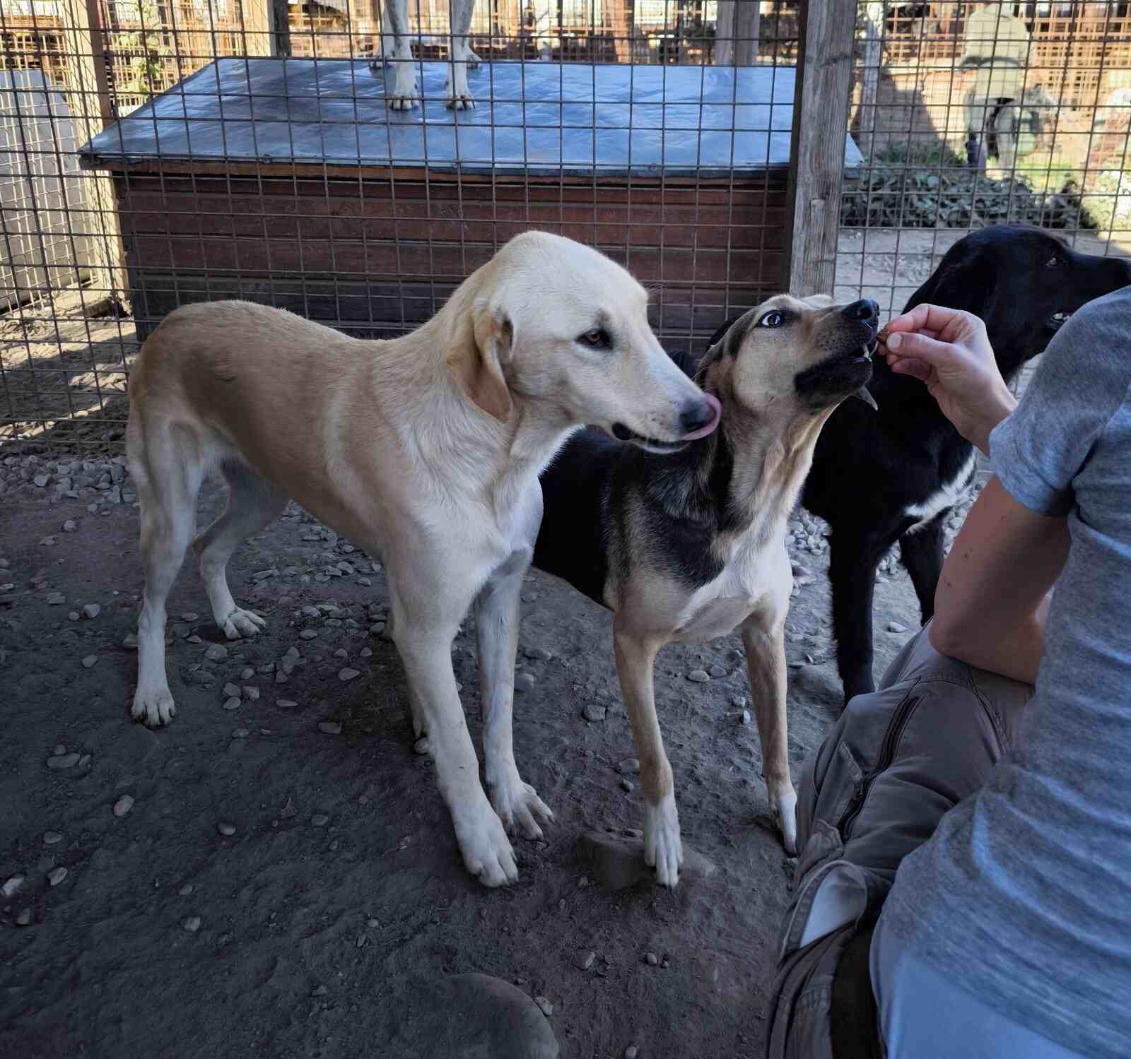 TURNER blieb immer auf Sicherheitsabstand. Die angebotenen Leckerchen nahm er ganz vorsichtig aus der Hand. Die vorhandenen Hunden aus seinem Kennel, waren ihm eine große Stütze und er suchte stets bei ihnen Schutz. Deshalb sollte er nur zu einem souveränen Ersthund vermittelt werden. Zu keiner Zeit hat er Fluchtverhalten oder Panik gezeigt, sondern stets Interesse an uns.