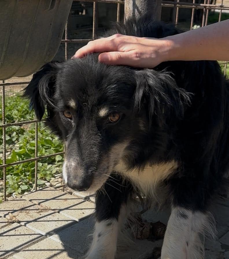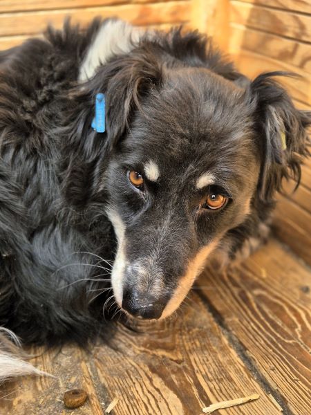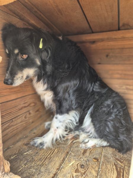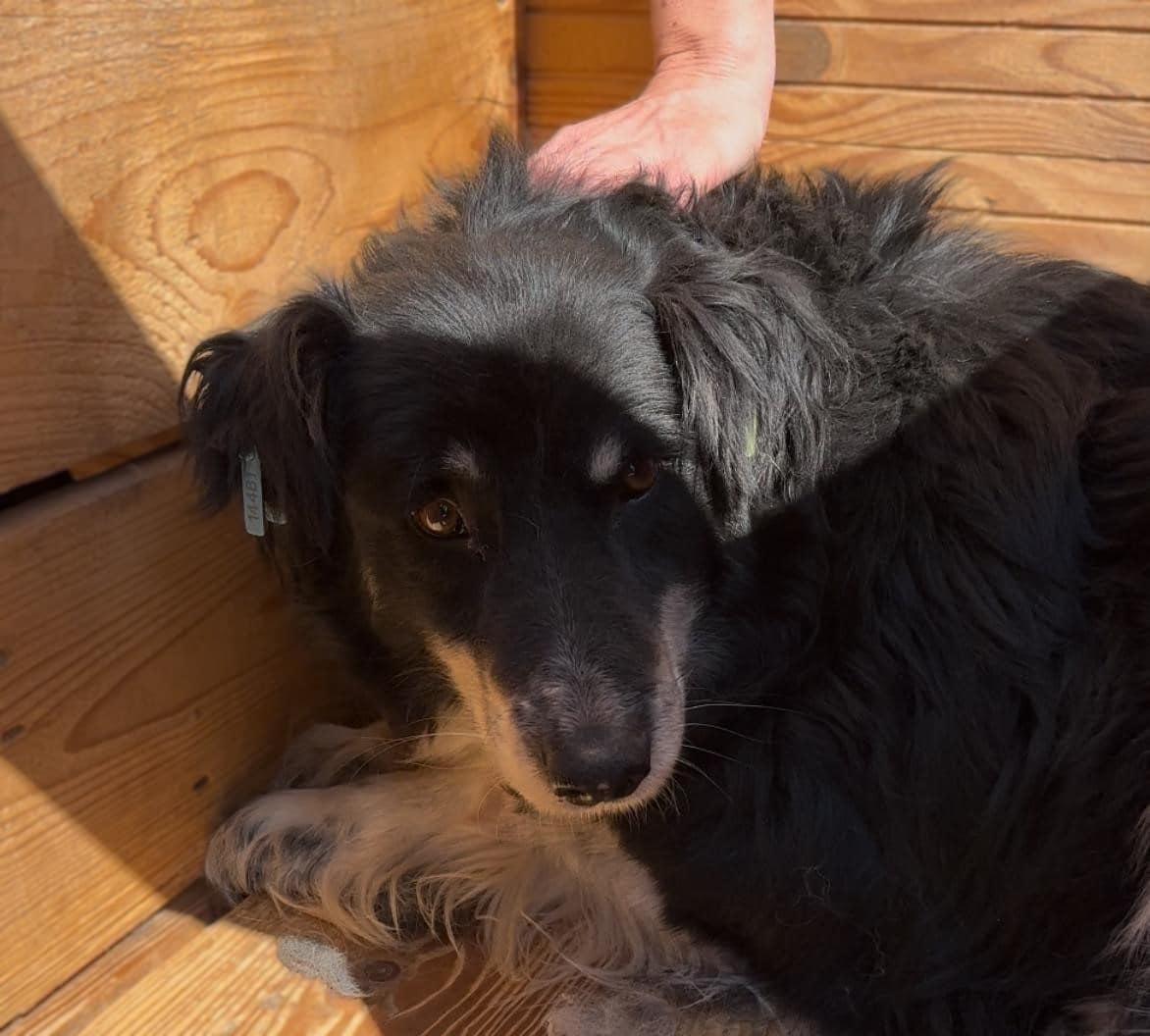 Tvis beobachtete uns bei unserem Besuch aus seiner Hütte. Er war sowohl in seiner Hütte, als auch außerhalb gut streichelbar. Man merkt ihm jedoch an, dass ihm der Menschenkontakt fehlt, sodass er die Streicheleinheiten noch nicht genießen konnte. Außerhalb seiner Hütte verhielt er sich ganz ruhig.