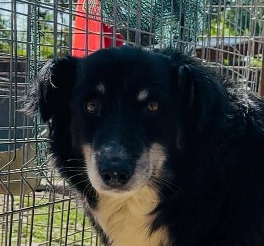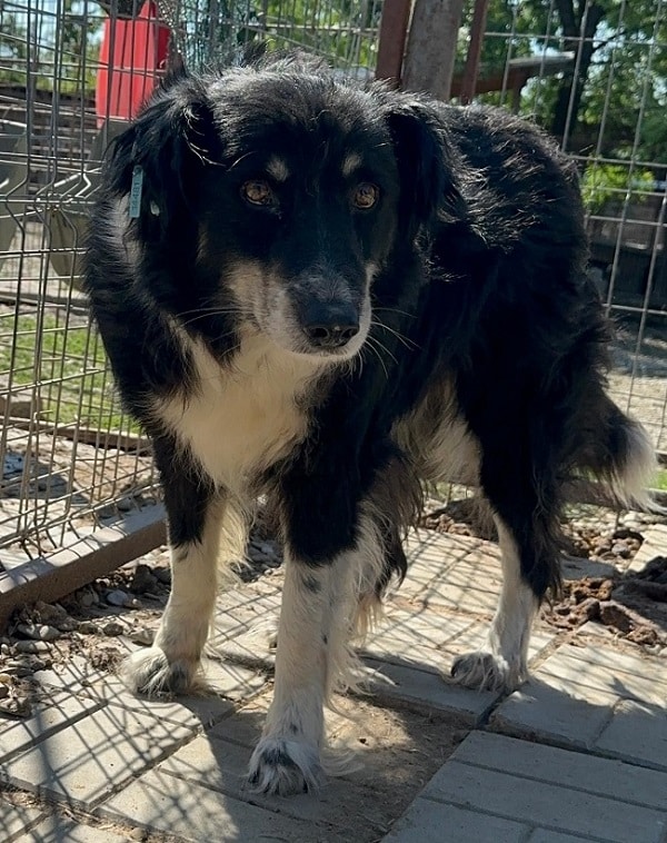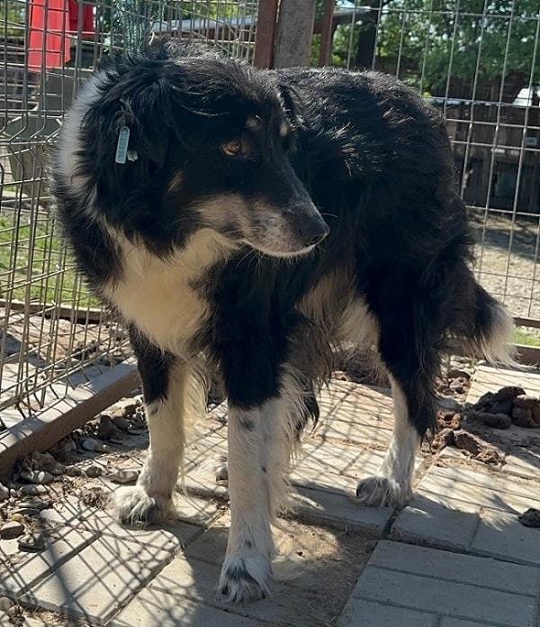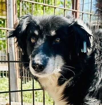Das hübsche Hundemodell hatte große Sorgen, als wir uns ihm näherten. So blieb er (oder sie) in der Hütte und wartete ab, was passieren würde. Zunächst nichts, dann berührten wir ihn von oben und konnten so die Ohrmarken auslesen. Nach einer Weile warnte er mittels Knurren und wir ließen ihn dann auch in Ruhe. Wir hoffen, dass er vielleicht auch so eine Chance erhält und sein Leben in Freiheit leben darf.
