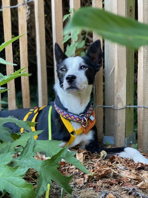 Im Garten ist er nicht gerne allein, hat große Sorge vor Umweltgeräuschen.
