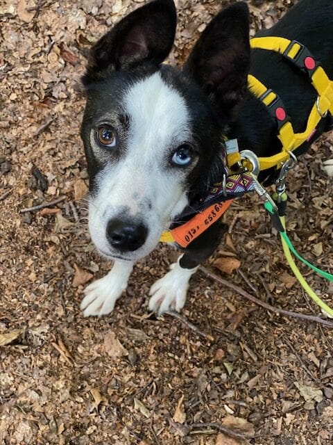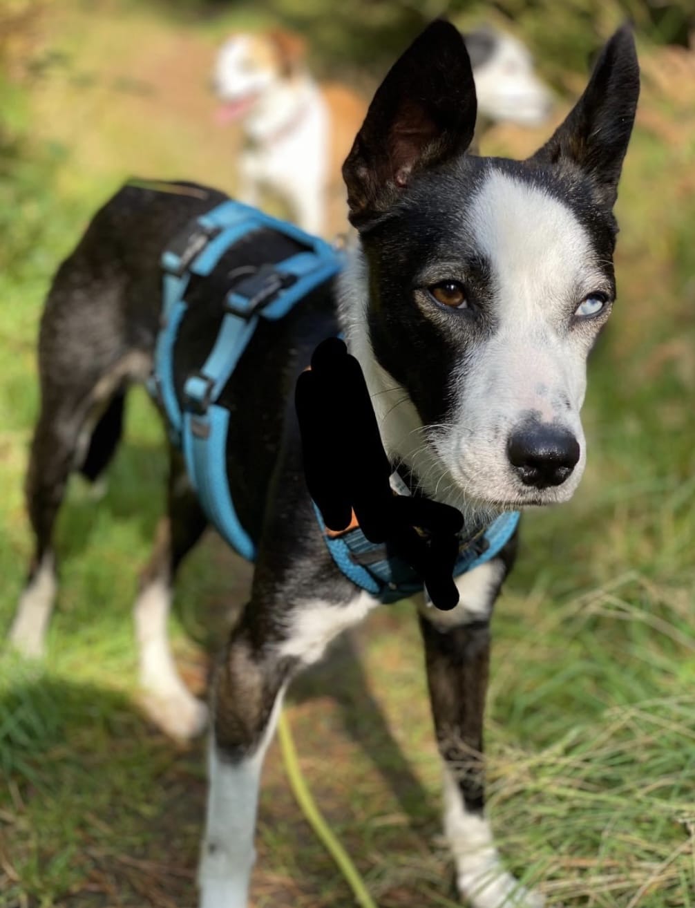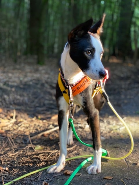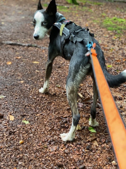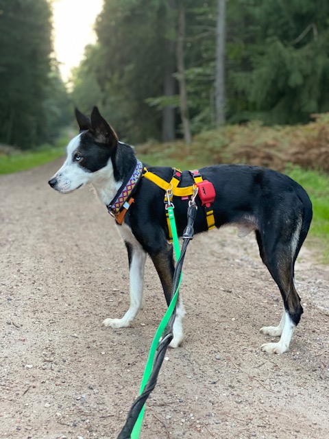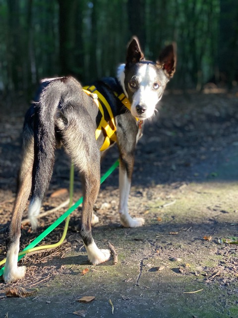 Mittlerweile trainieren wir mit ihm im Canicross- Zughundesport! Dabei hat er sofort verstanden worum es geht und rennt mit unbändiger Freude!