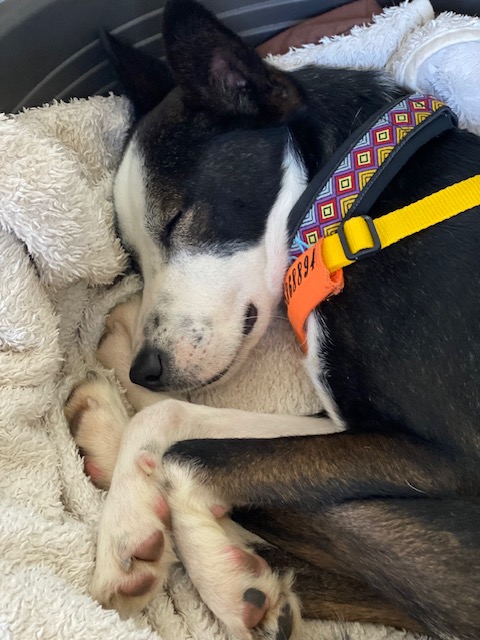 Twel braucht Menschen, die Lust an Laufsport ggf. Canicross haben, die mit ihm outdoor aktiv sind, da er indoor zumeist liegt und schläft braucht er eine alternative Auslastung.
