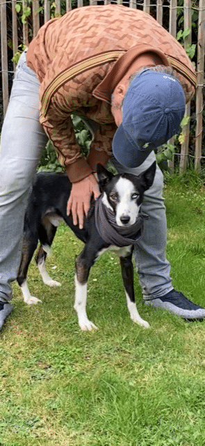 Oft ist er noch sehr besorgt, ob man ihm etwas antun möchte und duckt sich dann weg. Uns als seine Bezugspersonen jedoch vertraut er bereits sehr. Täglich festigt sich dieses Verhältnis und mittlerweile kommt er freudig, wenn er merkt, dass es auf eine Hunderunde geht. Hier blüht er förmlich auf und vergisst jede Sorge.