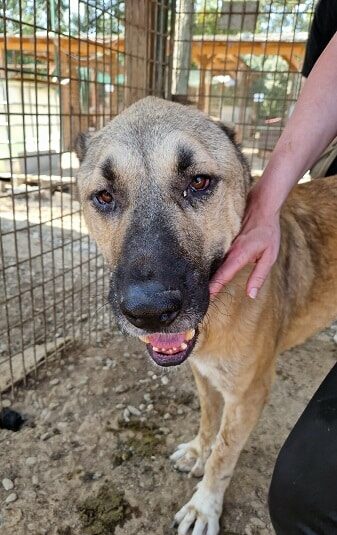 Der liebe ULF ist eine sehr imposante Erscheinung, aber im Herzen ein toller, freundlicher Rüde mit ruhigem Kern, der sich problemlos sofort von uns streicheln ließ. Er sitzt mit 2 weiteren sehr großen Rüden zusammen, was problemlos funktioniert.