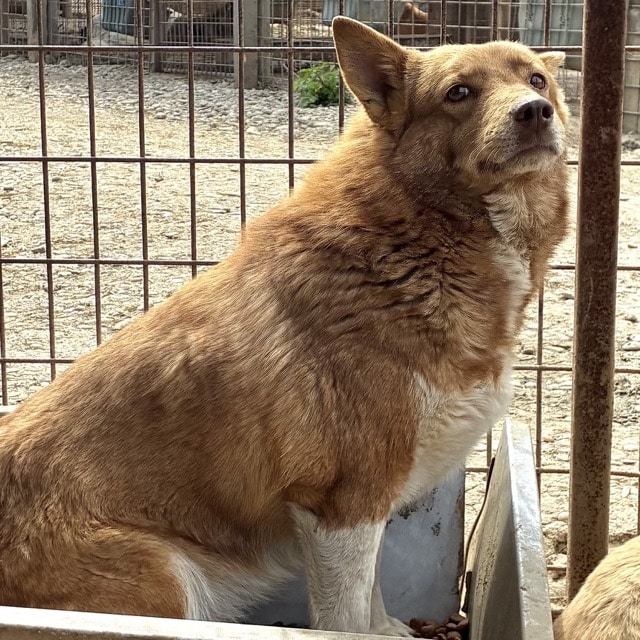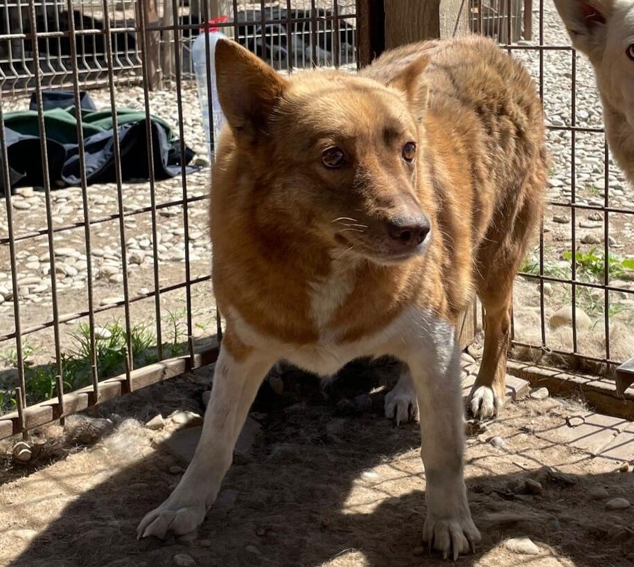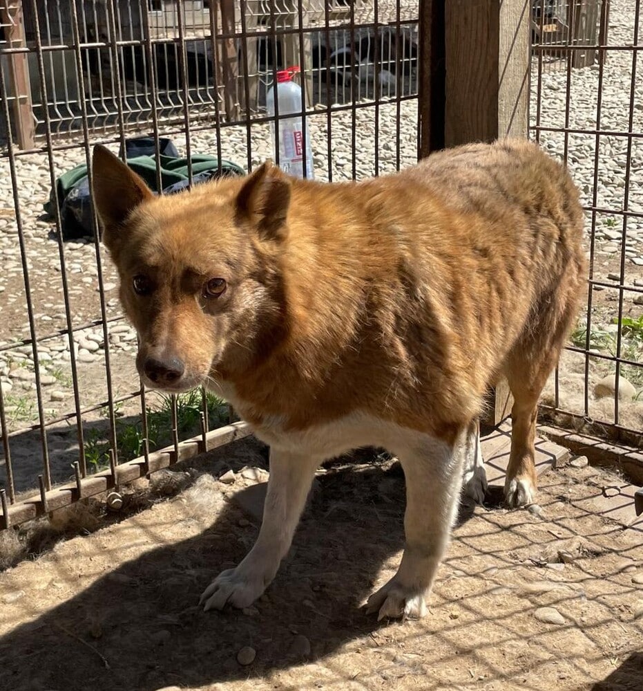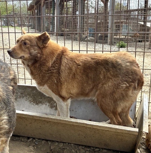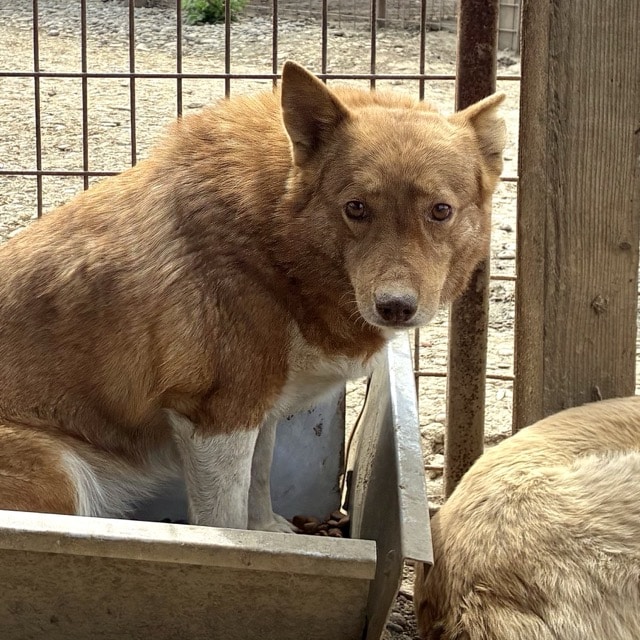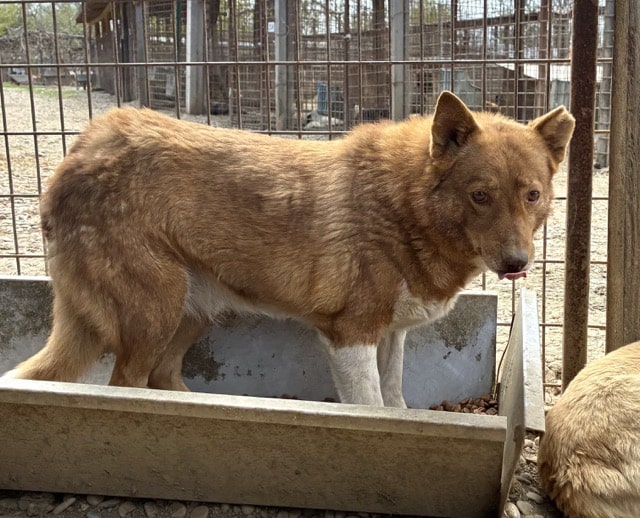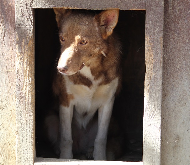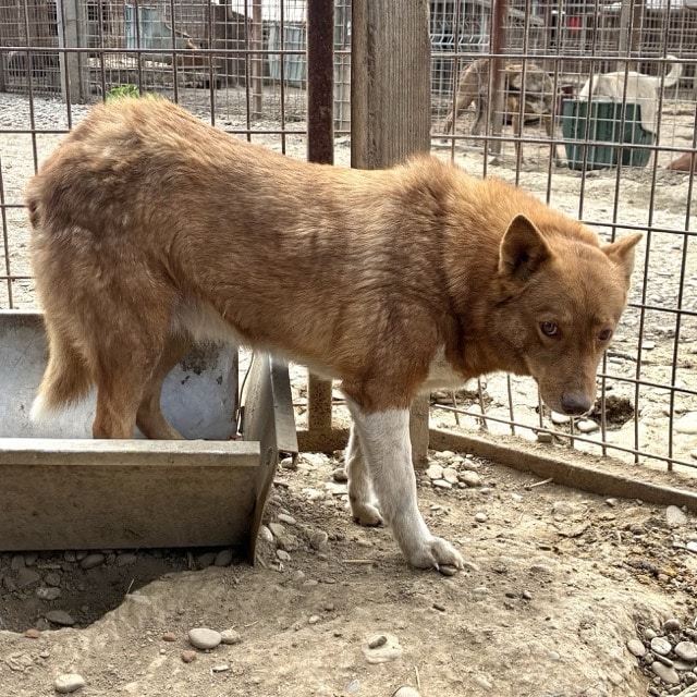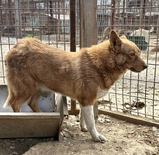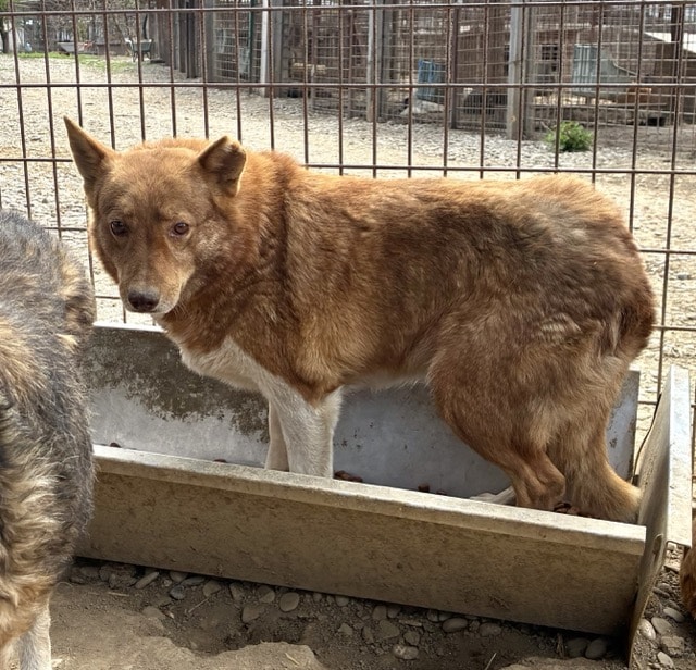 URSA kommt mittlerweile wohl ganz gut ans Futter. Sie ist deutlich zu dick. Während unserer Anwesenheit lag sie vorwiegend in einer Hütte, in der wie sie erst recht spät bemerkten. Als wir sie nötigten, diese zu verlassen, versteckte sie sich vor uns und wich uns aus. URSA ist leider weiterhin sehr scheu und braucht sehr erfahrene Menschen, die auch ausreichend Erfahrung im Umgang mit ängstlichen Hunden haben.