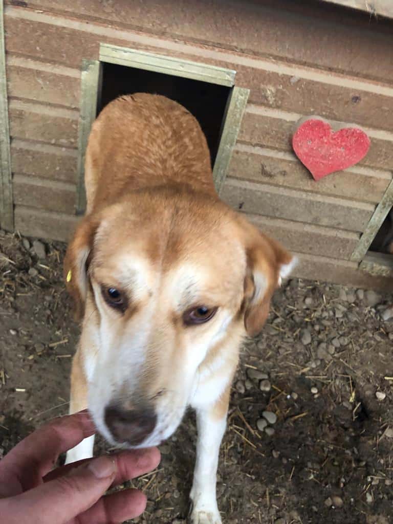 URSL hat uns dieses Mal neugierig begrüßt und blieb nicht nur in ihrer Hütte sitzen. Sie ist noch zurückhaltend, aber traute sich, Leckerlies aus der Hand zu nehmen.