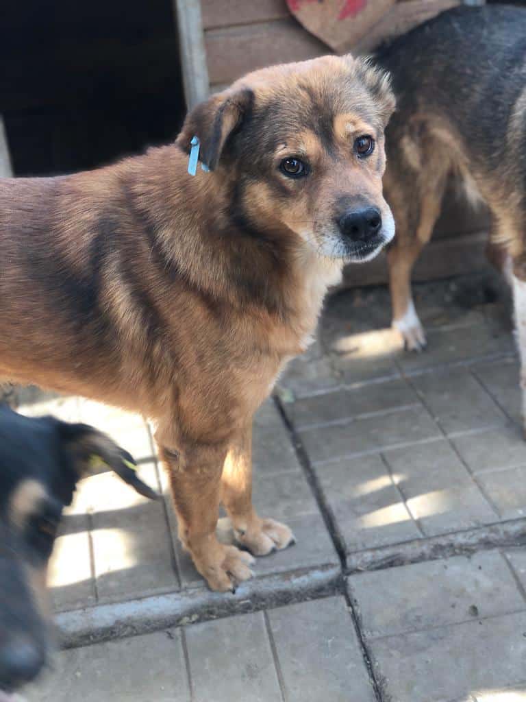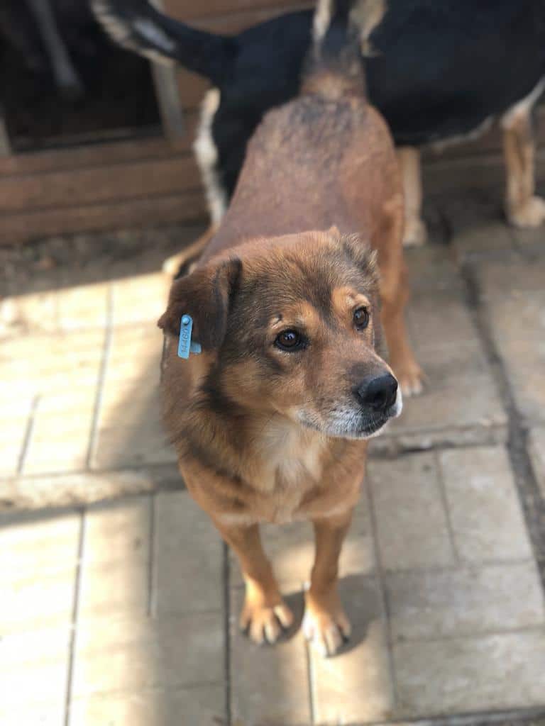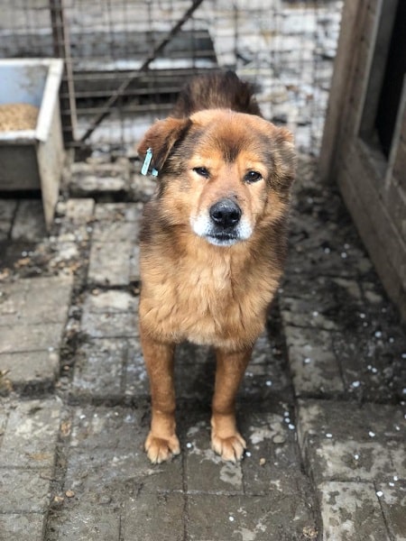 USTINOV kam bei unserem Besuch aus der Hütte und nahm sehr gerne unsere Leckerchen. Mehr ging an diesem Tag nicht, aber wer ausreichend Erfahrung und Geduld hat, würde diesem verträglichen Rüden ein schönes Zuhause bieten können.