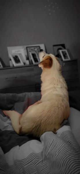 Innerhalb der Wohnung ist sie ein sehr ruhiger Hund, bellen null. Schlafen viel