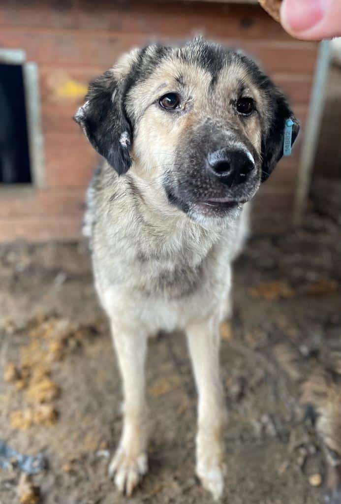 VALESKA ist gezeichnet von immer wiederkehrenden Hautproblemen, die der Stress und die mangelnde Hygiene im Shelter mit sich ziehen. Sie ist eine eher zurückhaltende, aber freundliche Hündin, die ganz vorsichtig Leckerli aus unserer Hand nahm.