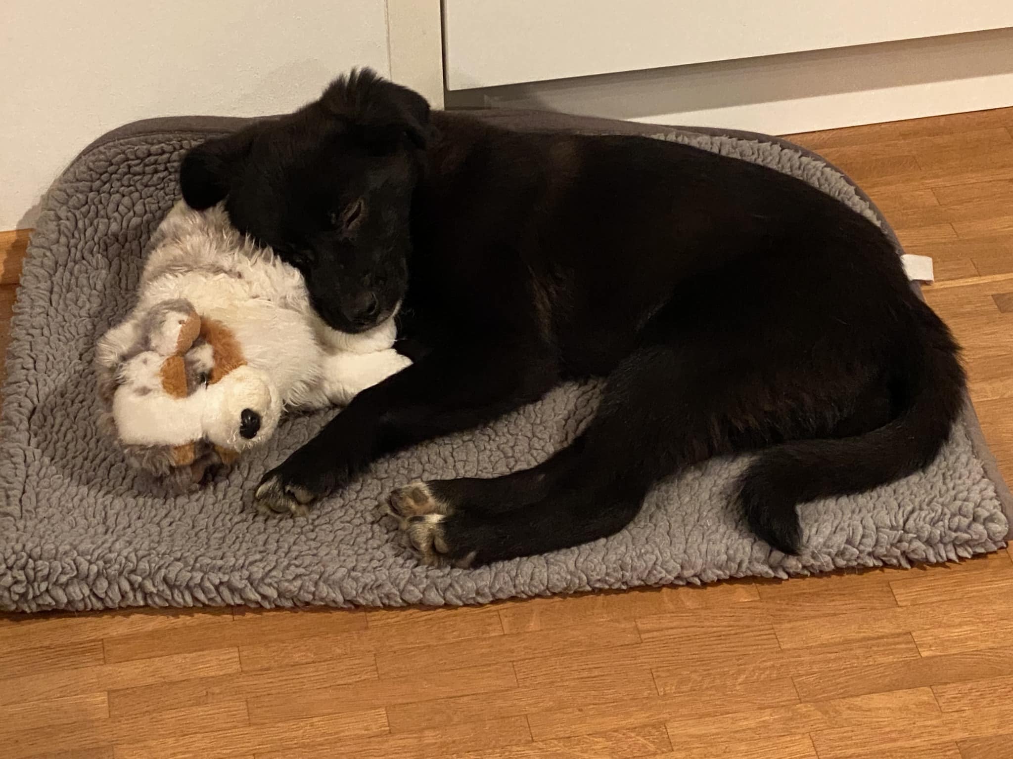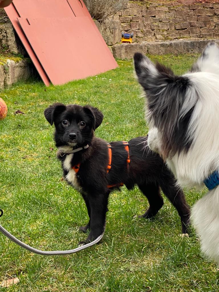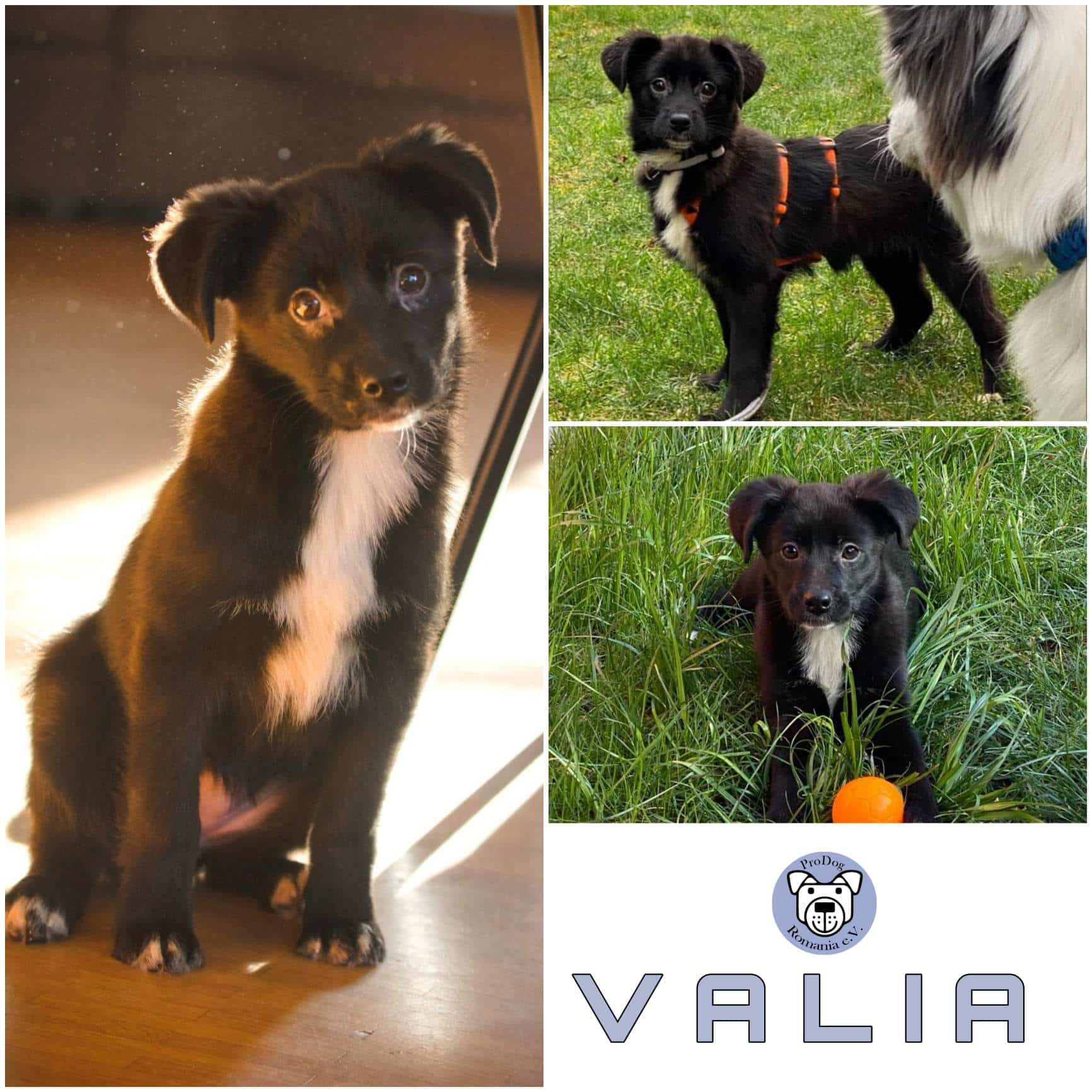 Nachdem sie auf ihrer Pflegestelle nach kurzer Zeit Vertrauen gefasst hatte, blühte sie immer mehr auf und zeigte ihr freundliches, verschmustes und menschenbezogenes Wesen. Sie ist tagsüber schon fast stubenrein und schläft nachts durch. Mit unserer fast 3-jährigen Hündin versteht sie sich prima, sie spielen sehr viel miteinander, teilen sich ihre Körbchen und Spielzeuge und gehen auch bei intensivem Spiel sehr vorsichtig miteinander um. Spaziergänge machen Valia zwar Spaß, sie ist unheimlich aufmerksam und erkundet die Welt mit offenen Augen, aber ihr reicht es im Moment auch vollkommen, im Garten mit ihrer „großen Schwester“ herumzutoben oder in der Sonne zu liegen. Sie gewöhnt sich so langsam an neue Geräusche oder fremde Dinge, wie Mülltonnen oder LKWs. Auto fahren ist kein Problem. Bis jetzt dauerten die Fahrten nicht länger als 20 Minuten (bis auf die Fahrt zur Pflegestelle), aber selbst da hat sie nicht gejault oder war unruhig.