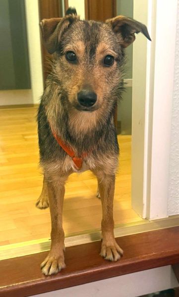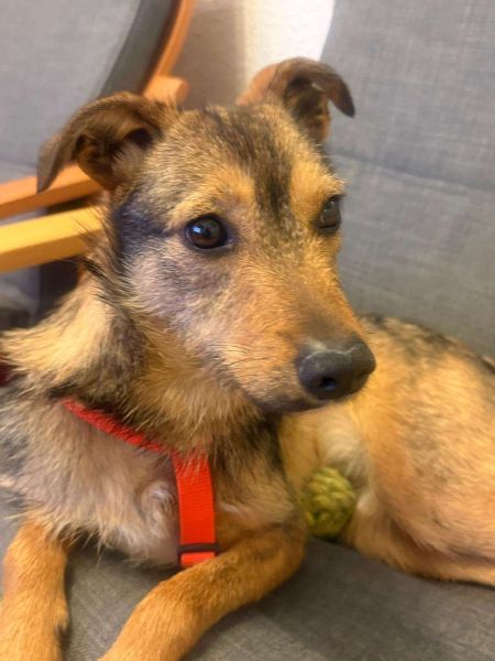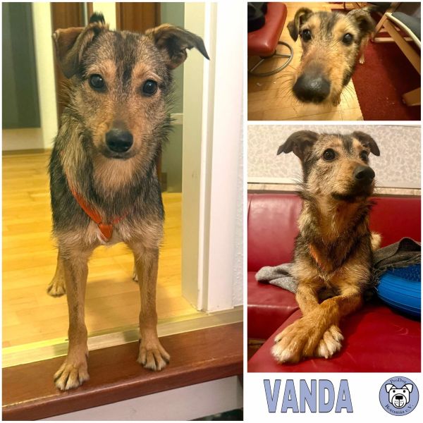 Vanda lebt seit Mitte Januar 2025 auf ihrer Pflegestelle in Strande. Sie zeigte sich von Anfang an sehr menschenbezogen, neugierig und gelehrig und geht gerne spazieren.
