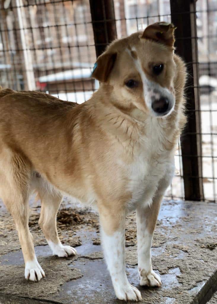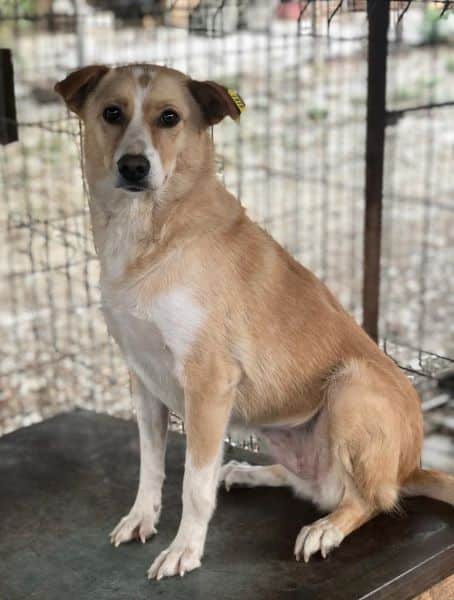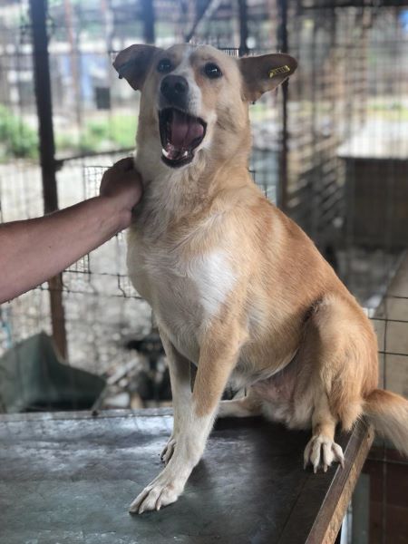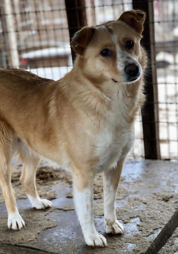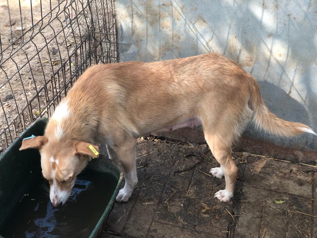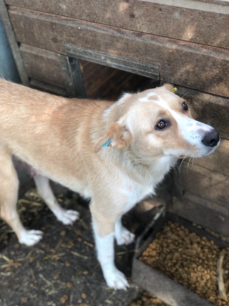 Vanessa zeigte sich uns als zutrauliche, neugierige und interessierte Hündin. Sie ist wunderhübsch und mit ihren ca. 45cm eine tolle Größe für die ganze Familie. Bei unserem Besuch hielt sie sich auf den Hüttendächern auf. Kein Wunder: unten wuselten ihre Kinder rum und der Boden ist nass mit Kot bedeckt. Sie ist verträglich und würde eine tolle Familienhündin für viele Unternehmungen sein.