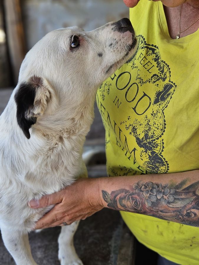 Die sehr liebe VANIA sitzt in einem völlig überfüllten Welpenkennel. Ihr ist das Gewusel einfach zu viel und so sitzt sie auf dem Hüttendach, ihrem einzigen Rückzugsort. VANIA ist eine sehr süße, menschenbezogene, verschmuste Hündin. Sie genoss unsere Streicheleinheiten und zeigte sich komplett nett. Hoffentlich wird sie schnell gesehen.