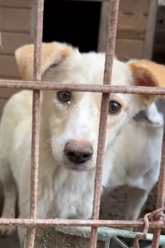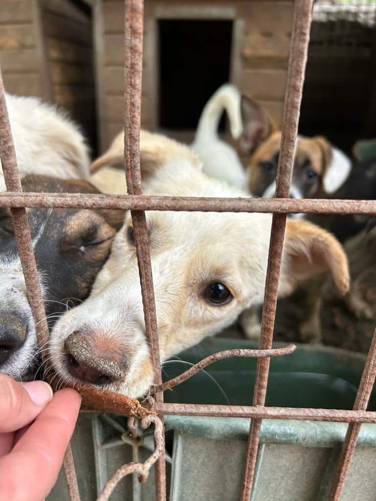 Diese kleine Hündin hat sich sehr über unseren „Übergriff“ – denn so muss unser Anfasstest für sie rübergekommen sein – erschrocken. Sie hat sich gewehrt und wollte einfach nur weg. Als wir später von außen an den Kennel noch einmal herantraten, kam sie, wie die anderen, freundlich ans Gitter und nahm gerne Leckerchen aus der Hand. Es braucht erfahrene Leute – optimalerweise mit souveränem Ersthund -, die ihr helfen, das Vertrauen zum Menschen zu festigen. Dazu sollte sie das Shelter schnellstmöglich verlassen.