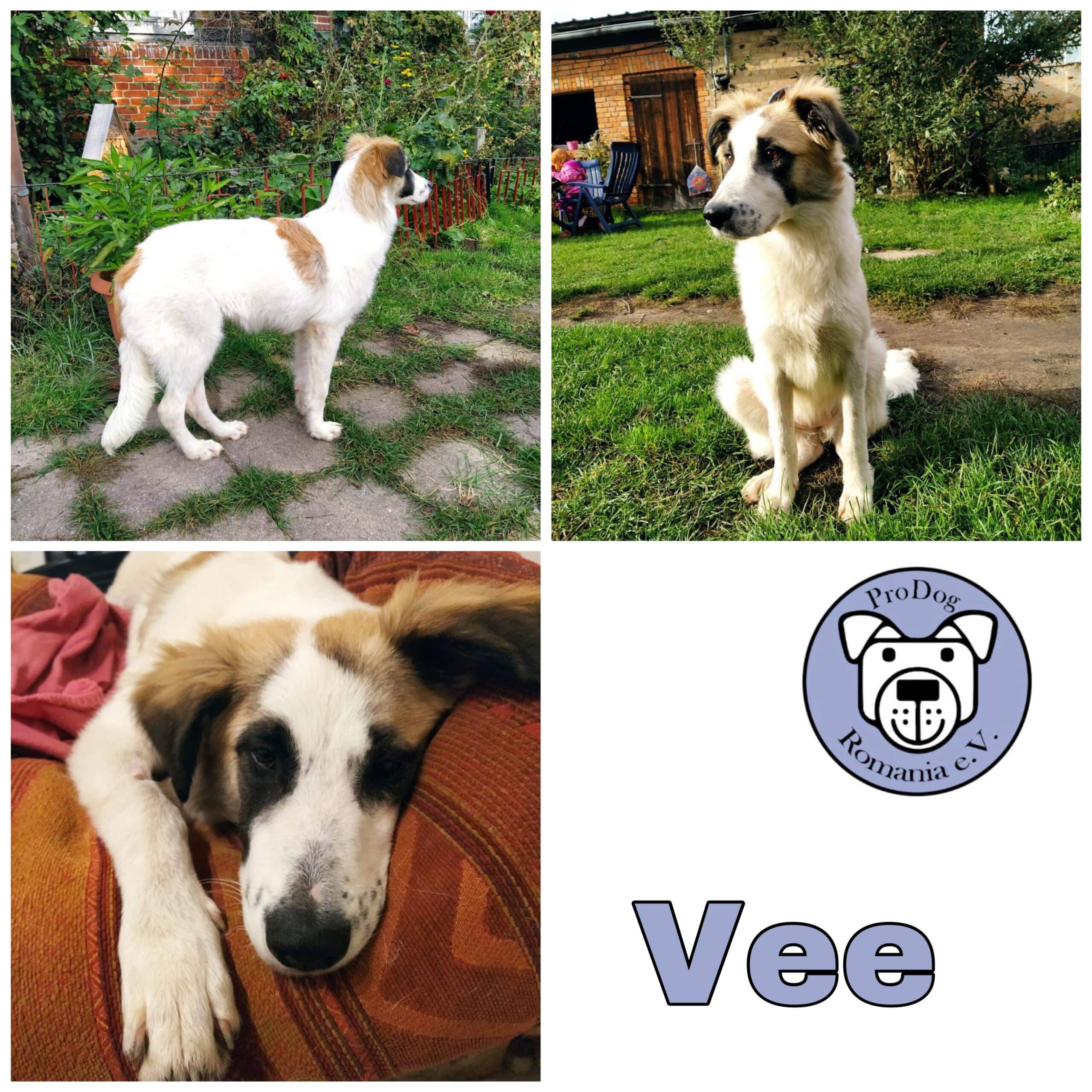 Vee bereichert seit Anfang Oktober unser Zuhause. Bei uns, in ihrer Pflegefamilie, lebt sie in einem gemischten Rudel aus großen und kleinen Hunden zusammen. Sie ist hier sehr verträglich und geht jedem Streit aus dem Weg. Vee hat bei uns verschiedenen Groß- und Kleintiere kennengelernt und zeigt sich ihnen gegenüber freundlich und unerschrocken. Unsere Katzen sind ihr etwas suspekt und gruselig, sie werden meistens ignoriert, manchmal aber auch angebellt, bevor sie ihrer Wege geht und lieber hin und wieder eines der herumlaufenden Hühner erschreckt.