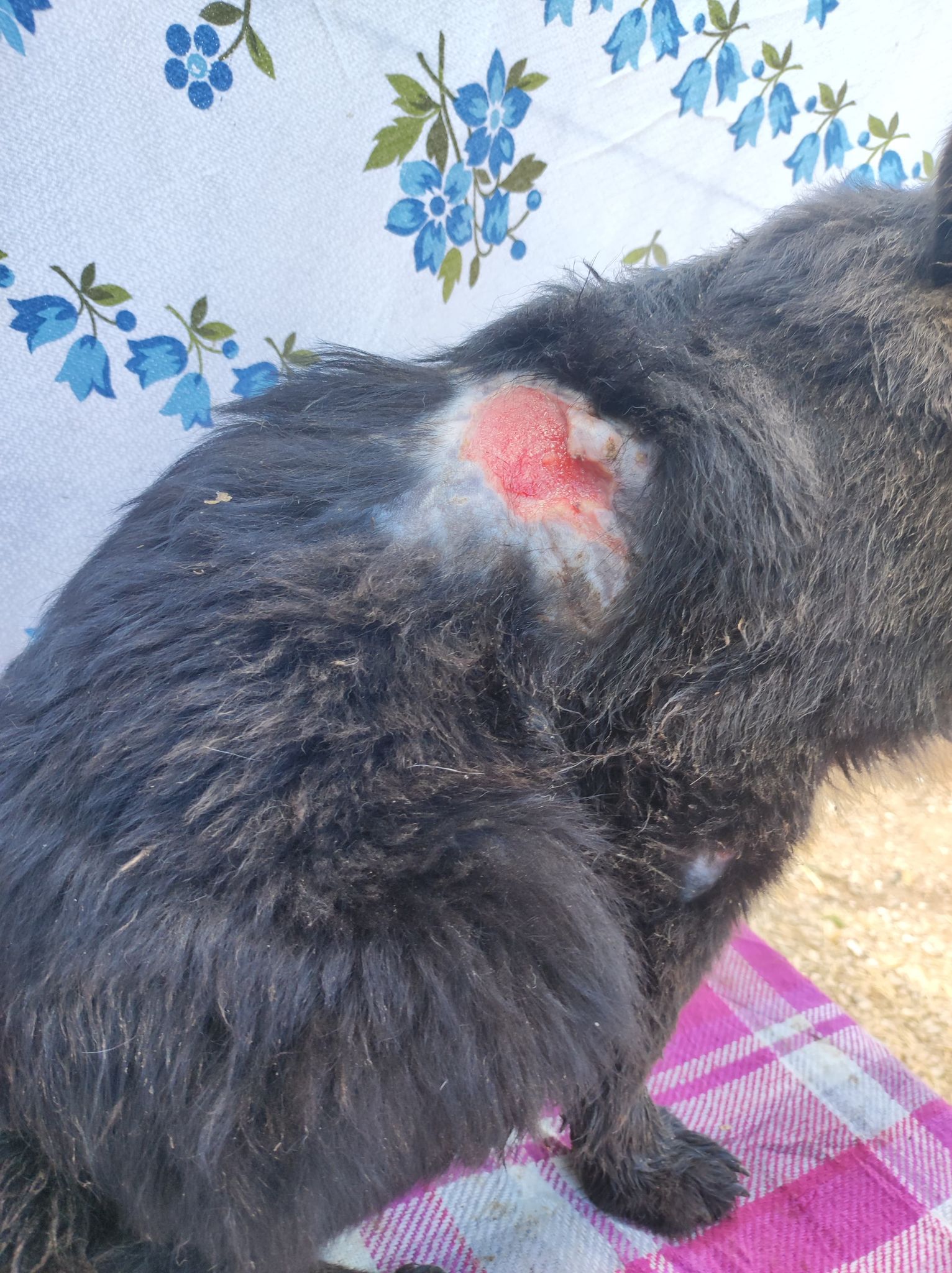 wurde durch den Zaun attackiert und gebissen -> Wunde am Rücken (09/2022)