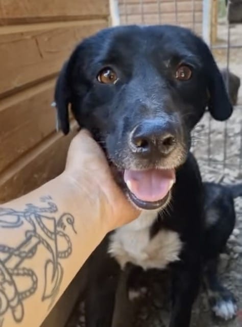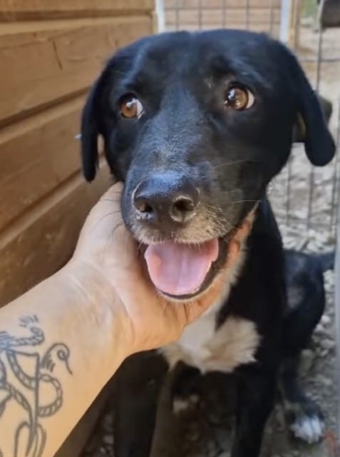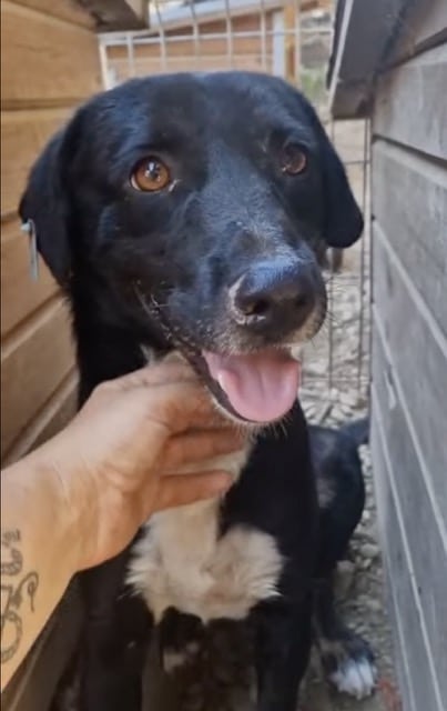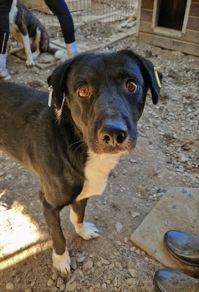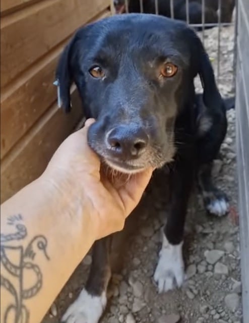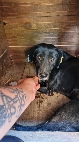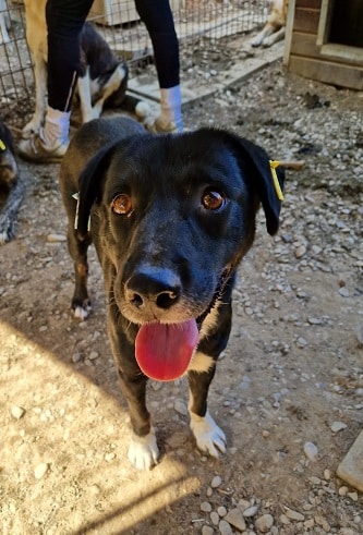 saß anfangs nur in der Hütte, eine dominante Hündin gibt dort den Ton an und der süsse junge Kerl versucht, sich zu schützen