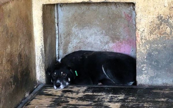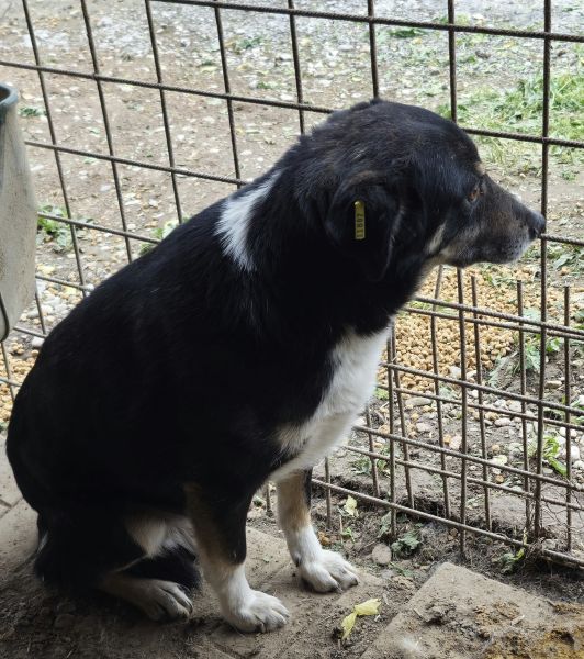 Der mittelalte Rüde ist noch relativ neu im Tierheim und scheint mit der Situation im Vetkennel völlig überfordert zu sein. Er nimmt die mitgebrachten Leckerlis in unserer Gegenwart vom Boden. Er wirkt müde und resigniert zu haben. Er war anfassbar ohne dabei Abwehrverhalten zu zeigen. Er scheint mit seinem Leben abgeschlossen zu haben. Gegenüber den anderen Hunden ist er sehr devot. Wir hoffen, dass sich sein Leben bald ändert und er gesehen wird.