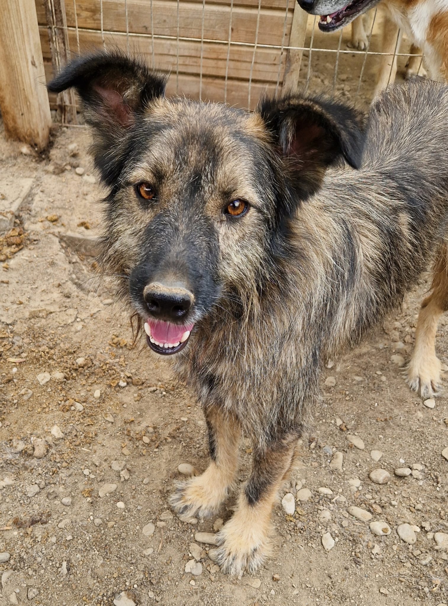 VIDYO freute sich sehr über unseren Besuch und war sehr aufgeregt, als wir seinen Kennel betraten. Freundlich aber unsicher, wie er sich verhalten soll, sprang er hin und her. Er nimmt weiterhin gerne Leckerlis aus der Hand, wir konnten ihn dabei auch am Hals streicheln. Er war selbst überrascht darüber und ließ die Berührung gut zu. Wir sind sicher, dass er in einer anderen Umgebung schnell auftauen wird, wenn man ihm etwas Vertrauen schenkt.