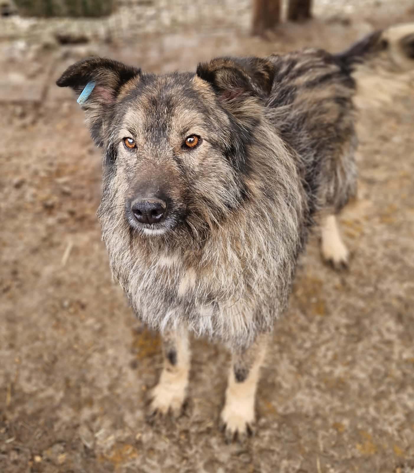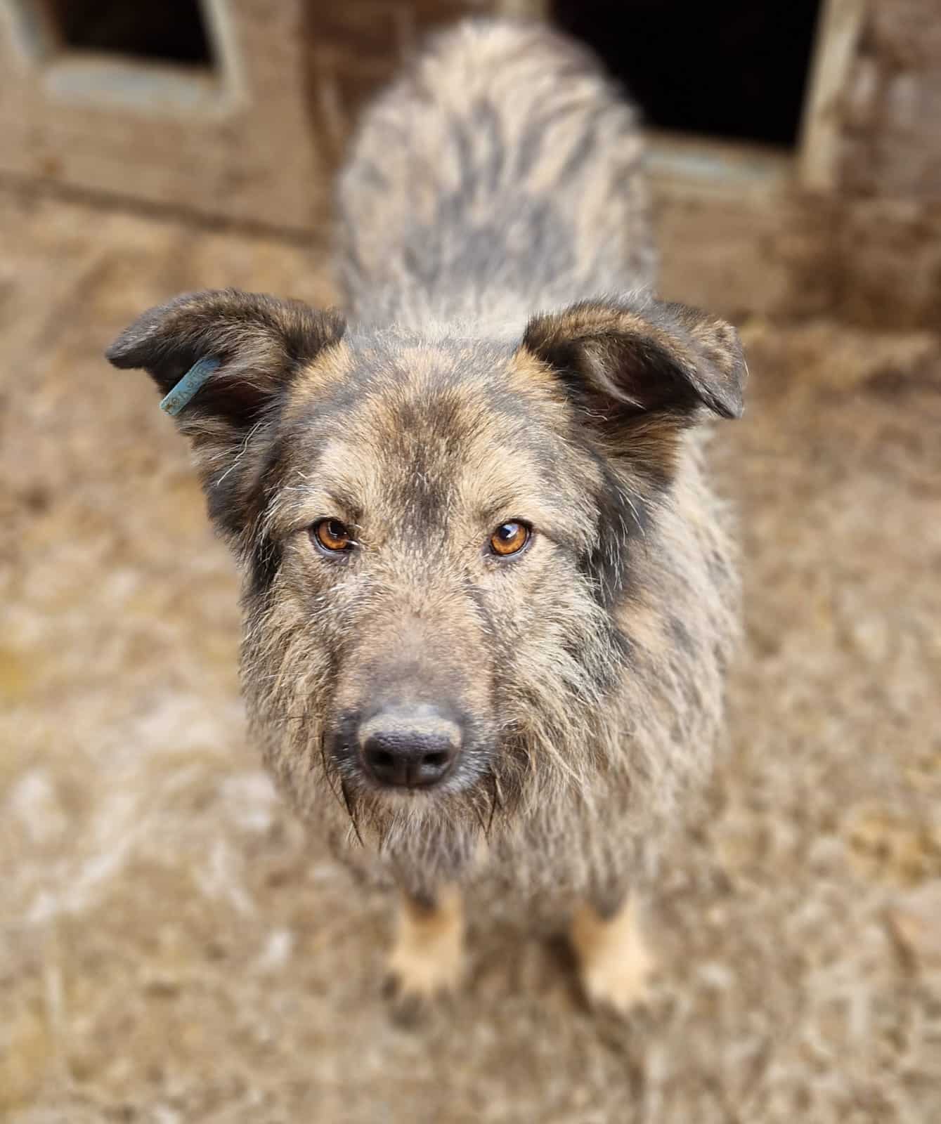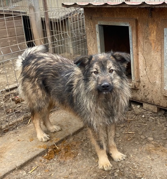 VIDYO hockt leider immer noch in Bucov. Weiterhin zeigt er sich neugierig und interessiert, gleichzeitig aber auch immer noch unsicher. Da er bei zuviel Nähe immer noch ausweicht, haben wir ihn wieder in eine Ecke gedrängt und konnten ihn dort anfassen und etwas streicheln, was er natürlich so nicht genießen konnte. Er zeigte aber nicht einen Ansatz von Abwehrverhalten. Als unsere Hand von oben kam, war seine Verunsicherung zu groß, sodass er wieder sofort auswich. Im Grunde hat sich an seiner Beschreibung die Jahre nicht viel geändert. VIDYO springt immer aus Unsicherheit und gleichzeitiger Freude im Kennel umher, lässt sich aber unter Fixierung anfassen, ohne sich zu wehren. Eigentlich eine Tatsache, an der man gut arbeiten könnte. Hier braucht es aber ausreichend Erfahrung und Vertrauensaufbau, um aus ihm einen zutraulicheren Rüden zu machen.