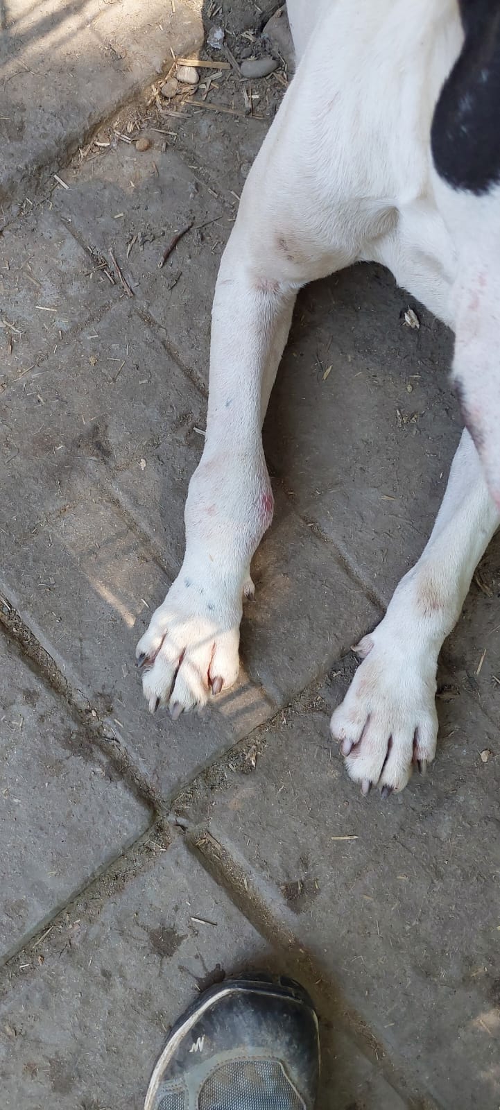 VIENNA hat weiter stark abgebaut. Sie sitzt in einem winzigen Dreieckskennel und ihre Haut ist ein einziger Alptraum. Sie ist braun von ihrem matschigen Kennel und überall hat sie gerötete Haut. Sie ist weiterhin super freundlich und hat sich über uns mega gefreut.