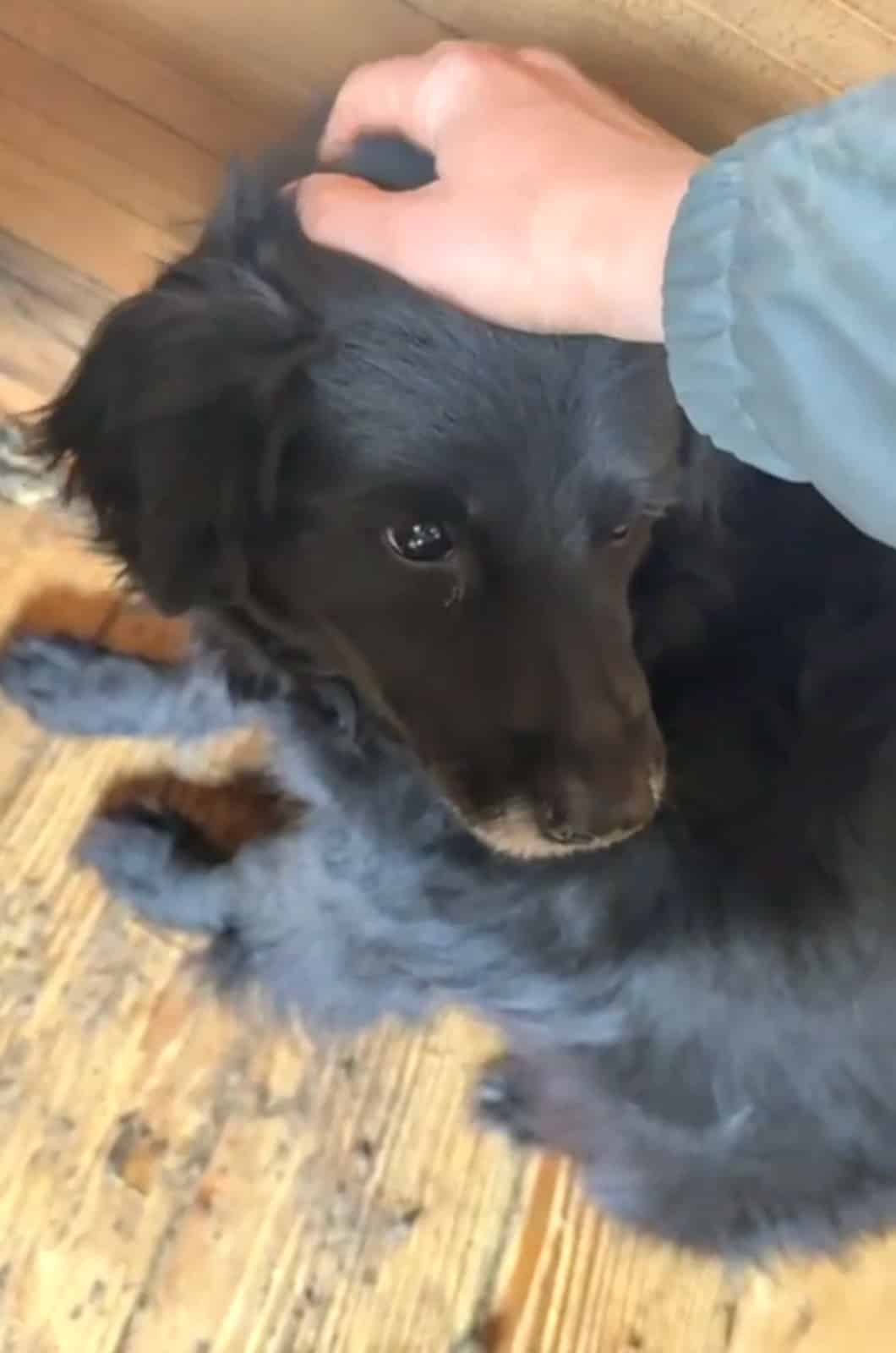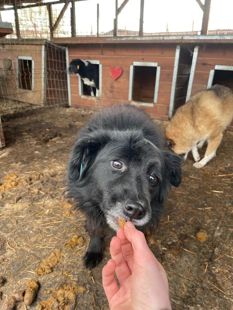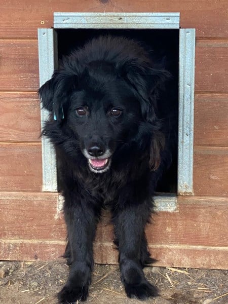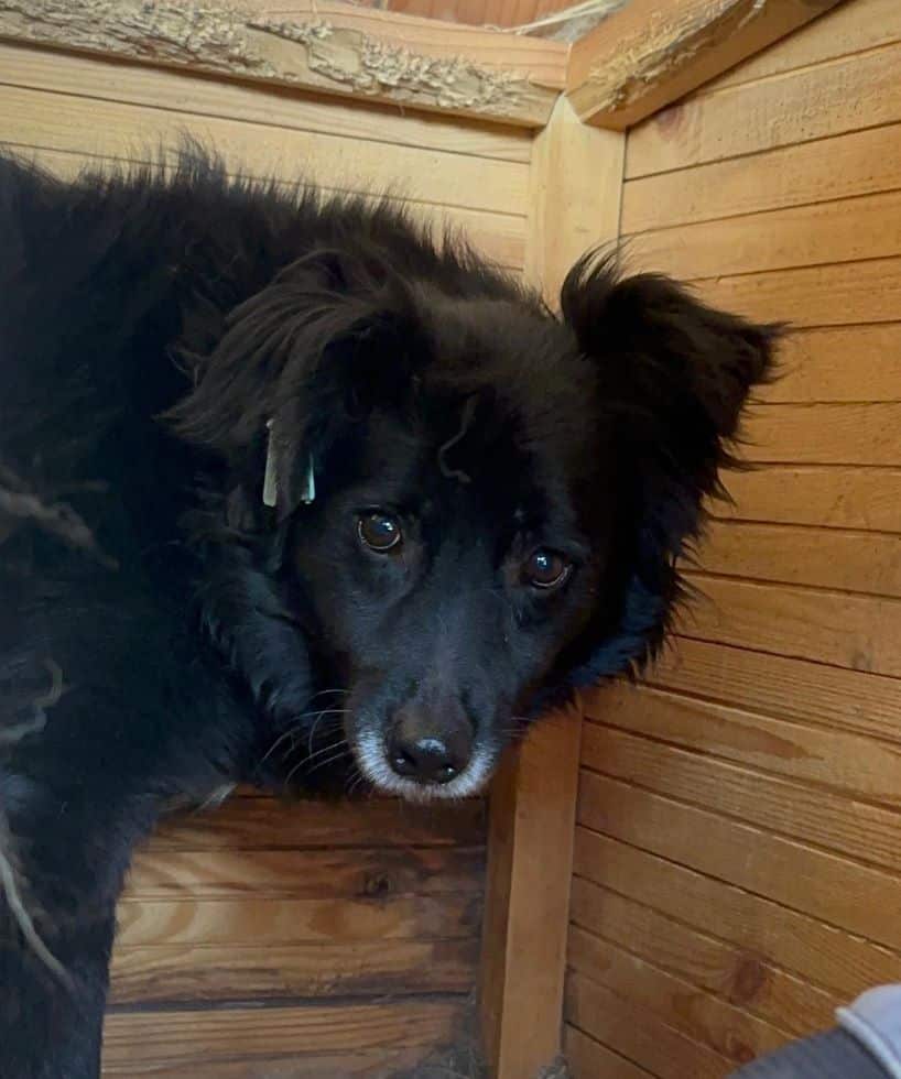 Die schwarze Schönheit beobachtete uns interessiert aus der Hütte heraus und nahm gern unsere Leckerli aus der Hand. In der Hütte hat sie sich nach einiger Zeit entspannt streicheln lassen. Mit etwas Eingewöhnungszeit würde VINCENZIA in einer ruhigen Umgebung sicher bald auftauen.