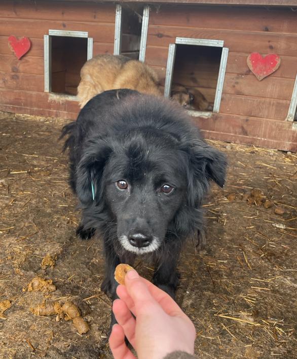 Die süße Hündin hielt sich während unserer Zeit im Kennel eher im Hintergrund auf. Dabei war sie nie ängstlich, sondern eher vorsichtig weil sie uns Menschen einfach noch nicht einschätzen kann. Die Leckerchen nahm sie auch schon aus der Hand. In der Hütte konnten wir sie dann auch schon streicheln, genießen kann sie es aber nicht. Für die hübsche Hündin suchen wir eine Familie die ihr die Zeit gibt ganz in Ruhe das Vertrauen zu uns Menschen aufbauen zu können, gerne mit souveränem Ersthund.