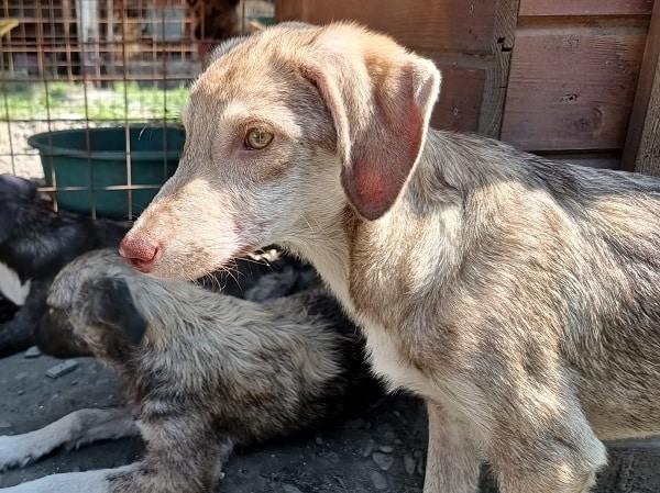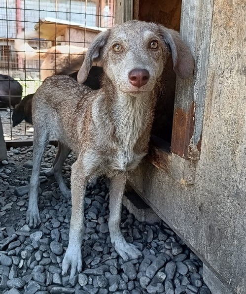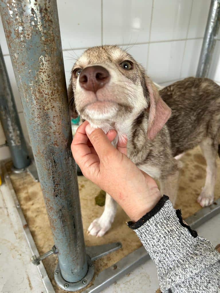 VINETTA ist inzwischen in einen Außenkennel umgezogen und fühlt sich dort sichtlich wohl. Ab sofort kann sie sich den Wind um die Nase wehen lassen und auch mal was von der Außenwelt mitbekommen. Nach wie vor ist sie ein junghundtypisch aufgeschlossenes Mädel.