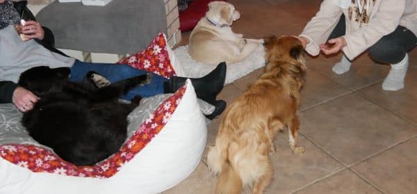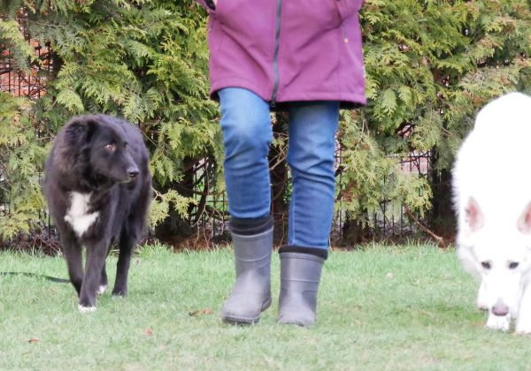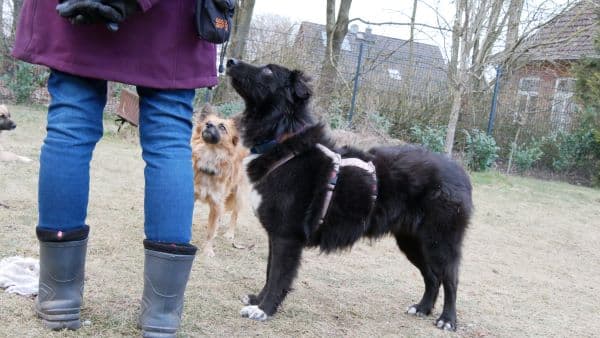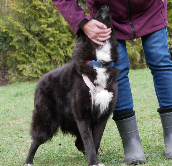 Gerne betrachtet Violet im Wald herumlaufenden oder fliegenden Tieren oder die Gartenhühnern. Sie zeigt hierbei keinerlei jagdliche Motivation, sondern eher staunendes Interesse an anderen Lebewesen. Andere Hunde sind ihr nicht so wichtig, wie ihr Mensch. Bei Fremd-Hunde-Begegnungen nimmt sie sich total zurück. Daher können wir uns Violet auch gut als Einzelhund vorstellen. Vorausgesetzt, dass es für sie trotzdem viele Möglichkeiten der Hundebegegnungen gibt.
